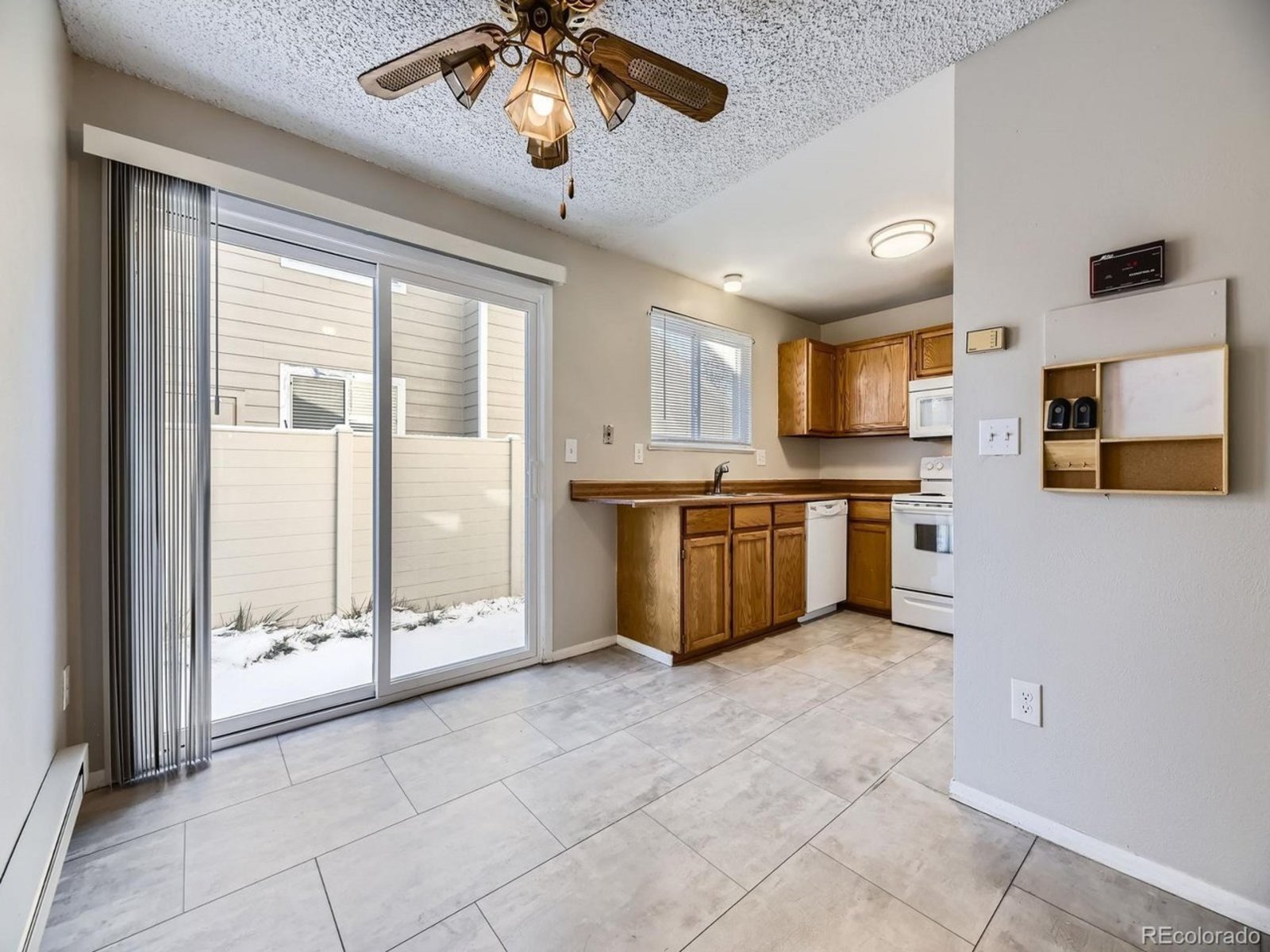 Seller says "Make an offer" on this charming 2-bedroom, 1-bathroom (with walk-in shower), 1-car garage townhome, perfect for comfortable living and modern convenience. Located in a desirable neighborhood, this property features an open floor plan with spacious living and dining areas. The kitchen offers ample cabinet space, making meal preparation a breeze. Step outside to your private, fenced patio—ideal for outdoor relaxation or gardening. Four baseboard heating units allow for individual heat control in each room! The one-car garage provides additional storage and/or convenient off-street parking. This home is perfect for first-time buyers or anyone looking to downsize without compromising on style or comfort. Don’t miss the opportunity to make this cozy townhome your own! Shopping, restaurants, and parks are nearby. LOAN IS ASSUMABLE! Reduce your monthly payment with this assumable loan and 10% down! Contact agent for details!