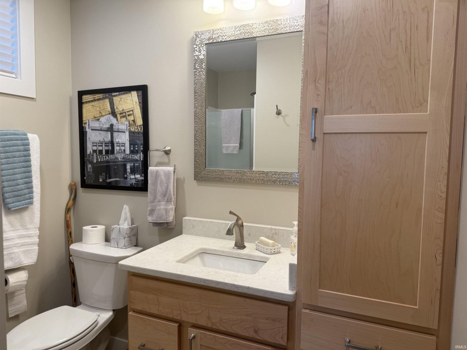 Discover the perfect blend of quality craftsmanship, thoughtful design, and unparalleled functionality in this exceptional 3-bedroom, 2.5-bathroom home, built by the renowned Loren Wood Builders. Every square foot has been carefully customized to maximize space, storage, and comfort, making this home a true standout in one of Bloomington’s most desirable neighborhoods. Exceptional Design & Features High-End Finishes: Enjoy the beauty and durability of quartz countertops, custom cabinetry, and top-of-the-line appliances in a chef-inspired kitchen. Smart Storage Solutions: From custom-built shelving to expansive lighted storage spaces tucked under the eaves, this home offers an abundance of room to keep your life organized. Convenient Built-Ins: Additional built-in shelves in the half-bath and guest bedroom provide the perfect display or storage for books, linens, or keepsakes. Spacious Closets: A floor-to-ceiling storage closet across from the laundry center ensures effortless organization. Custom Lighting & Ceiling Fans: Every room is designed for comfort, with ceiling fans throughout and dimmers in the kitchen and dining area to set the perfect ambiance. Luxurious Bathrooms: The upstairs bath boasts a double vanity and two built-in medicine cabinets, offering both style and practicality. Indoor-Outdoor Living at Its Best One of the crown jewels of this home is the stunning custom screened-in porch, complete with built-in lighting and a high-end outdoor ceiling fan. Whether you’re savoring your morning coffee or unwinding in the evening, this space allows you to enjoy the outdoors in comfort, rain or shine. A Prime Location Nestled in a quiet yet connected community, this home is just moments from the YMCA, bike trails, and local parks, offering easy access to Bloomington’s vibrant lifestyle. Plus, it’s conveniently situated near the bike storage, mail kiosk, and a charming picnic shelter, making everyday life even more convenient. “The Olive Branch” offers the best of modern living in a well-established, welcoming community. With its meticulous design, abundant storage, and unbeatable location, this home is a rare find.
