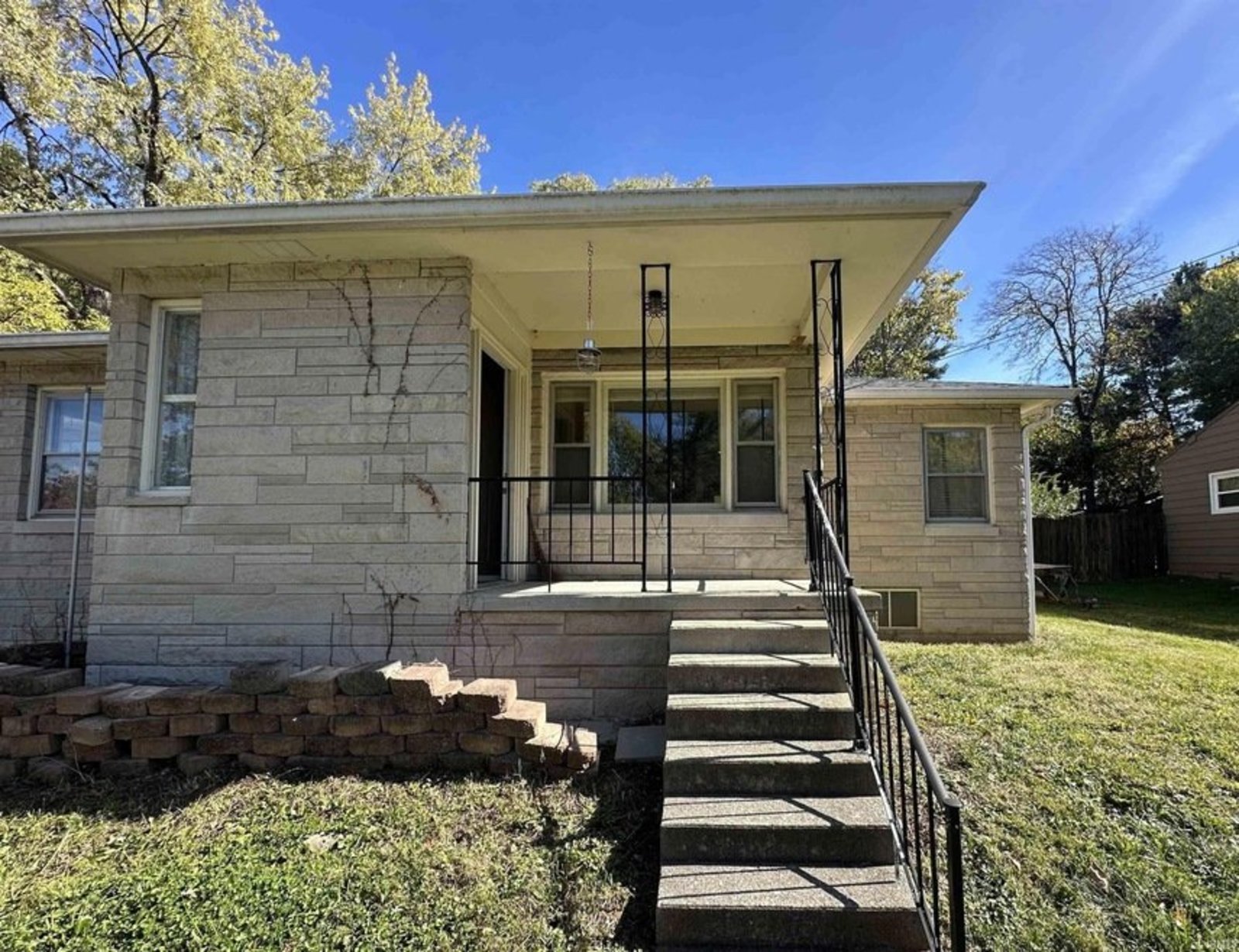 This 3-bedroom ranch home is in good condition and offers a convenient location close to Indiana University, downtown Bloomington, shopping, dining, and parks. The spacious layout features a large living room, a separate dining area, and a comfortable family room highlighted by a limestone fireplace, perfect for relaxing or entertaining. The main level features a mix of tile and wood flooring throughout, combining function and warmth. Several key updates add peace of mind, including a new roof (5 years old), furnace and A/C (3.5 years old), and Anderson windows in the living room (installed 5 years ago). The oversized one-car garage (14’ x 22’) provides plenty of space for storage, projects, or hobbies. The exterior features timeless limestone construction and a large rear concrete patio overlooking the fenced 0.42-acre lot. A storage shed is also included for added convenience. Offering a blend of comfort, updates, and an excellent location.