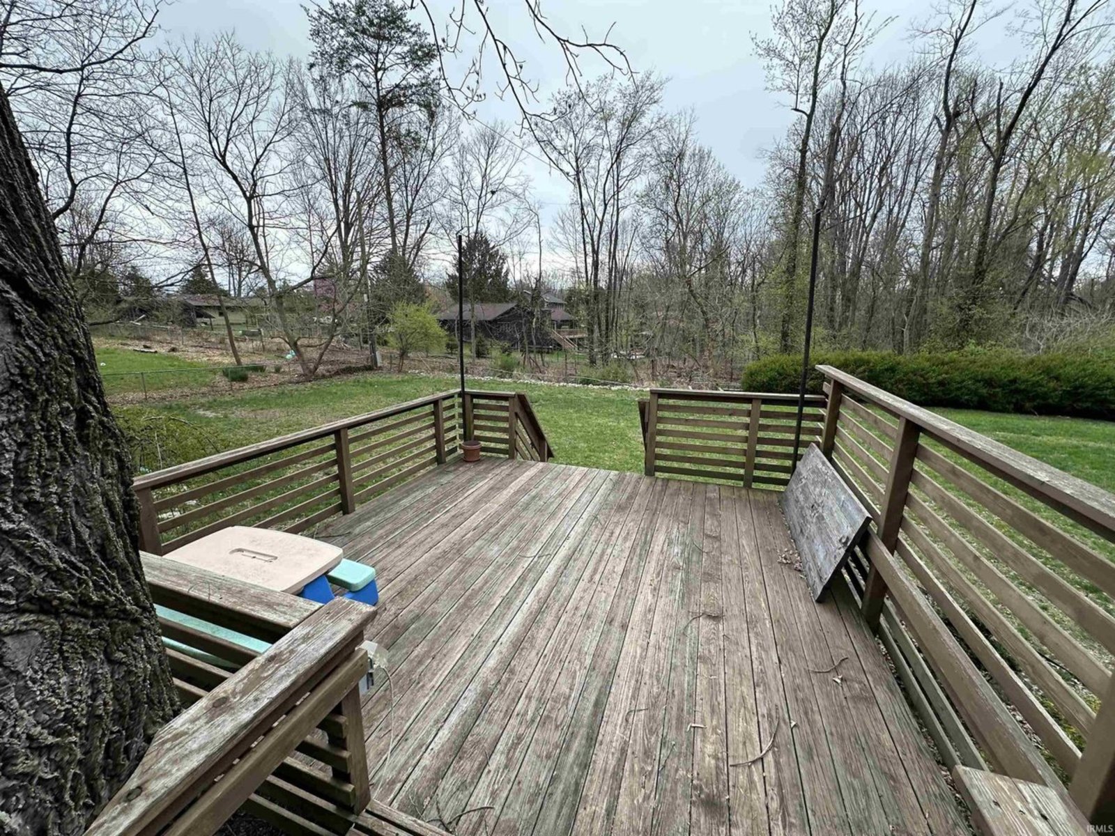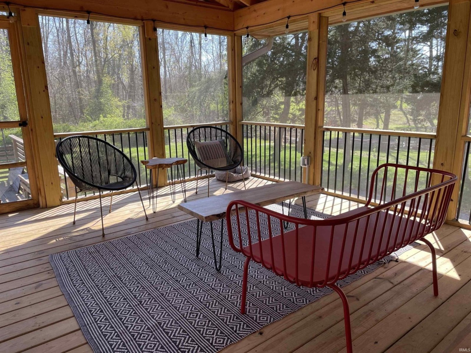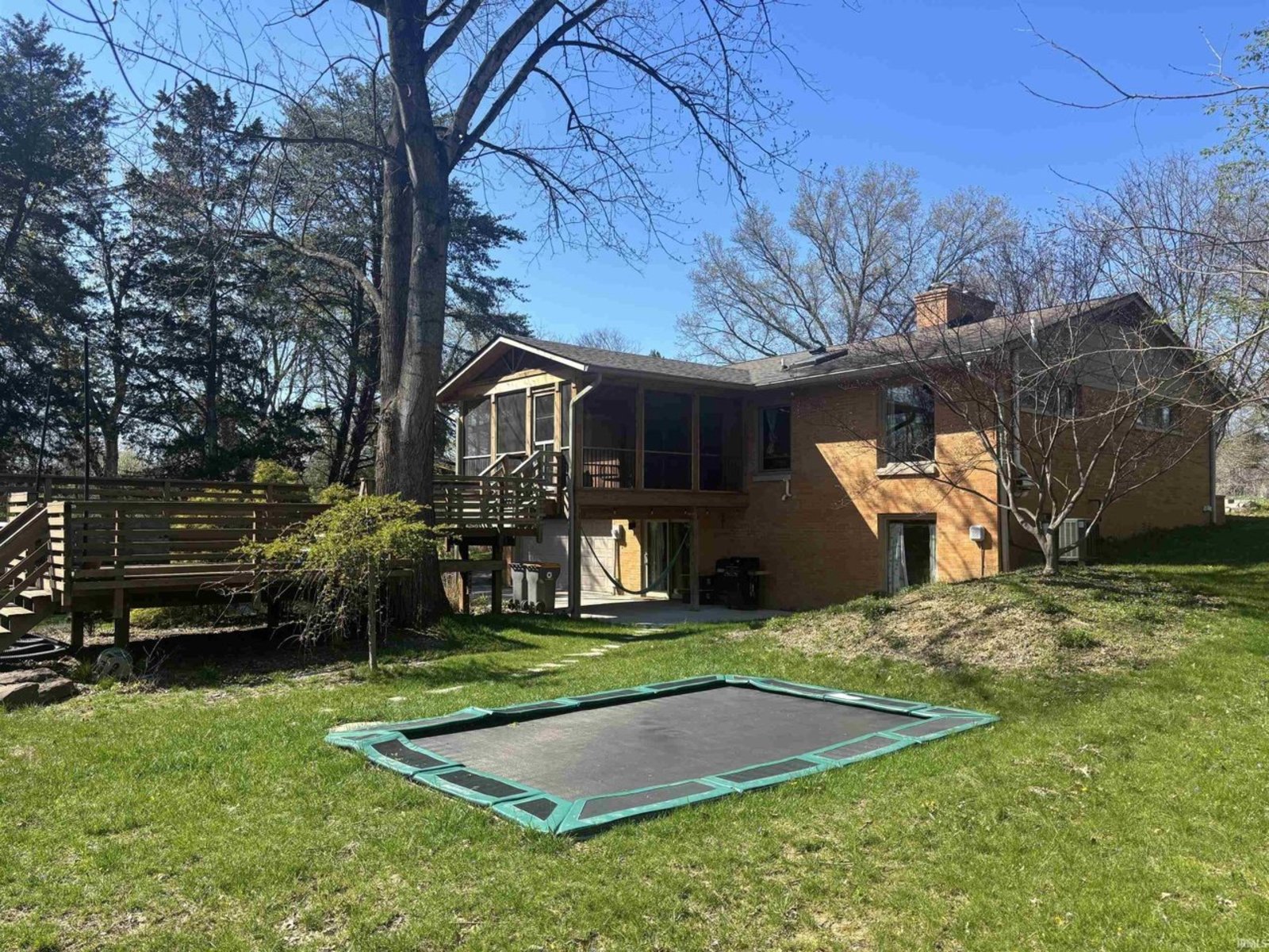 Mid-Century Brick Ranch on Walk-Out Basement—Half-Acre Lot In Town! This immaculate 3-bedroom, 2-bath home offers classic mid-century charm with modern updates, all on a premium half-acre lot right in the heart of town. With 1,700 sq ft on the main level and a semi-finished walk-out basement, you'll enjoy nearly 2,800 sq ft of living space, plus a beautifully landscaped yard that backs to serene woods. Inside, you’ll find gorgeous hardwood flooring in the living and dining rooms. The stunning updated kitchen features quartz countertops, top-of-the-line appliances, ample cabinetry, and a skylight for added natural light. Adjacent to the kitchen is a cozy breakfast nook that opens to a huge screened-in porch, which flows onto a multi-level deck—perfect for entertaining or simply enjoying the peaceful backyard setting. The main level also includes a spacious primary suite, two additional generous bedrooms, and a full hall bath, enhanced with solar tubes for additional brightness. The lower level boasts a large family/recreation room with new carpet and sliding doors that open to the backyard. There’s also a roomy laundry area, abundant storage space, and direct access to an oversized 2-car garage. Tucked in a quiet yet incredibly convenient neighborhood, this home is just 1.5 miles from the IU campus, and close to downtown, parks and trails, restaurants, shopping, and the YMCA.