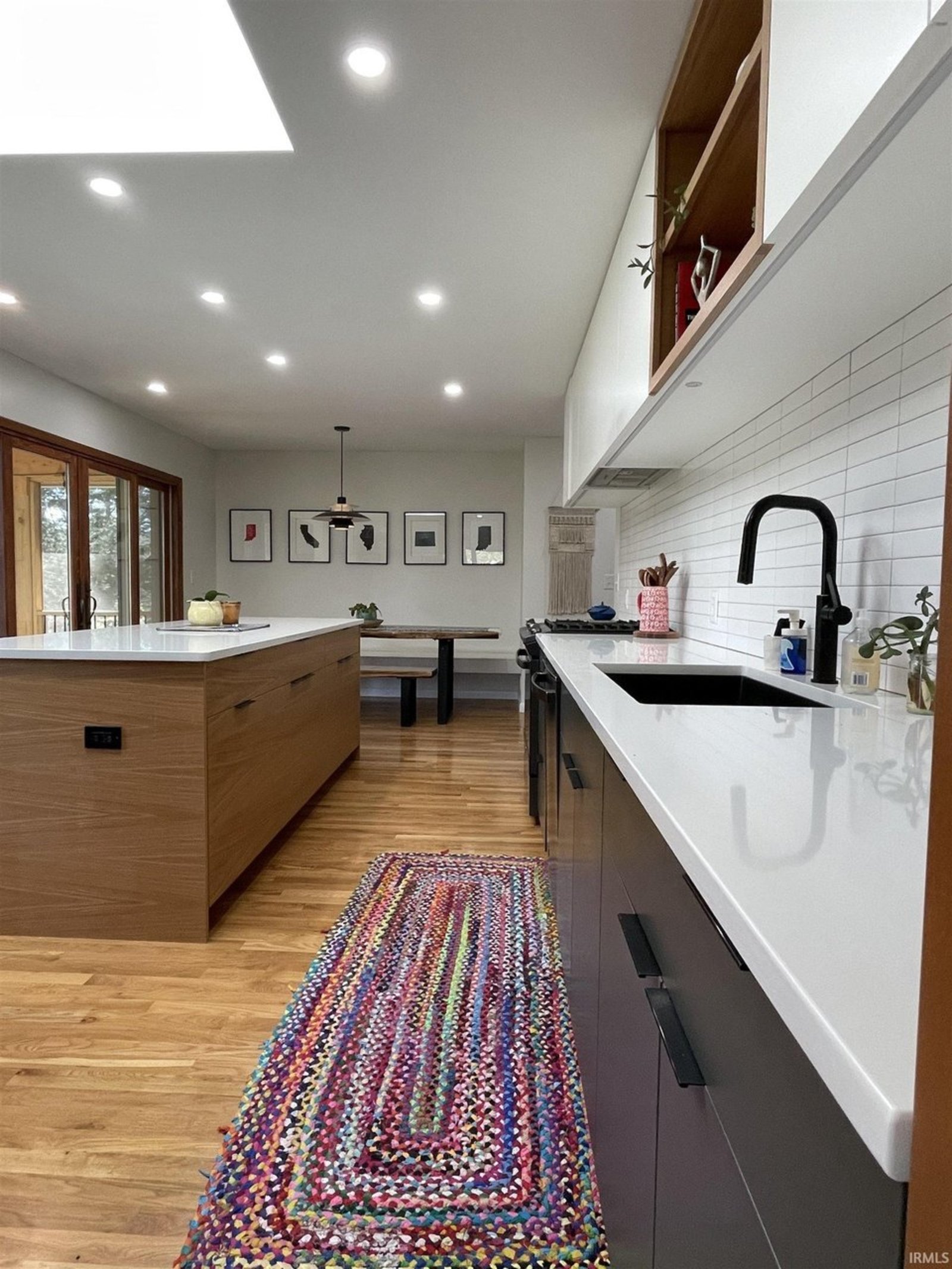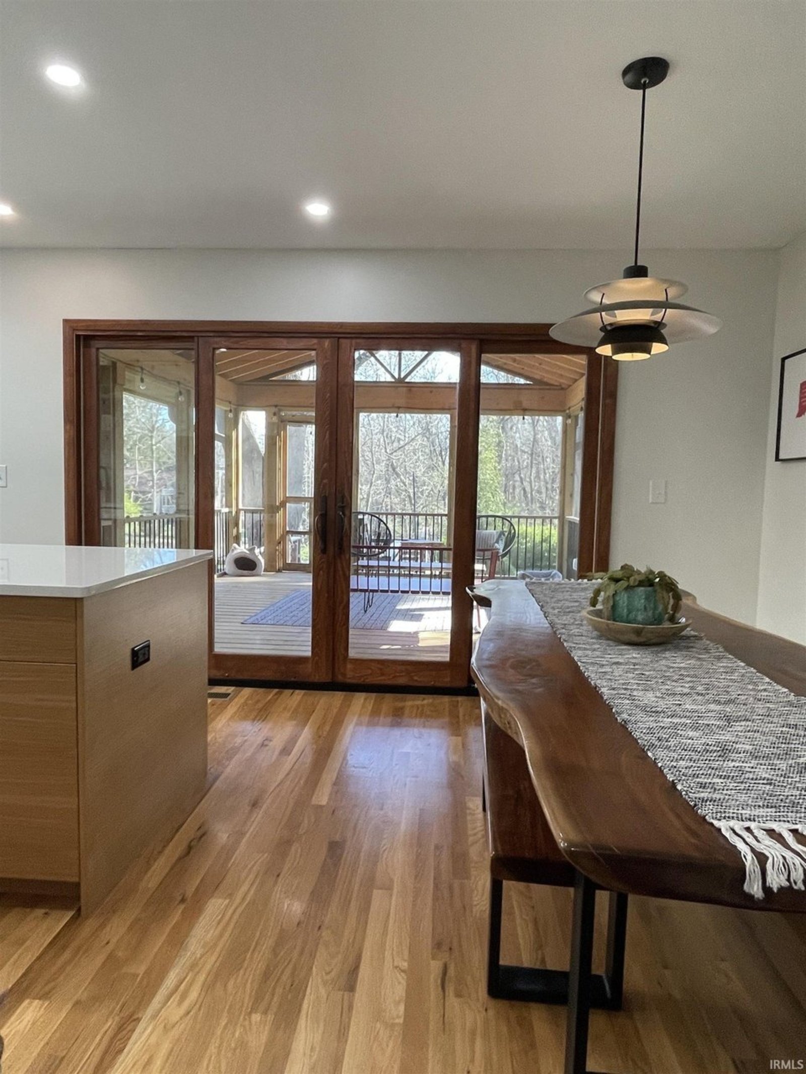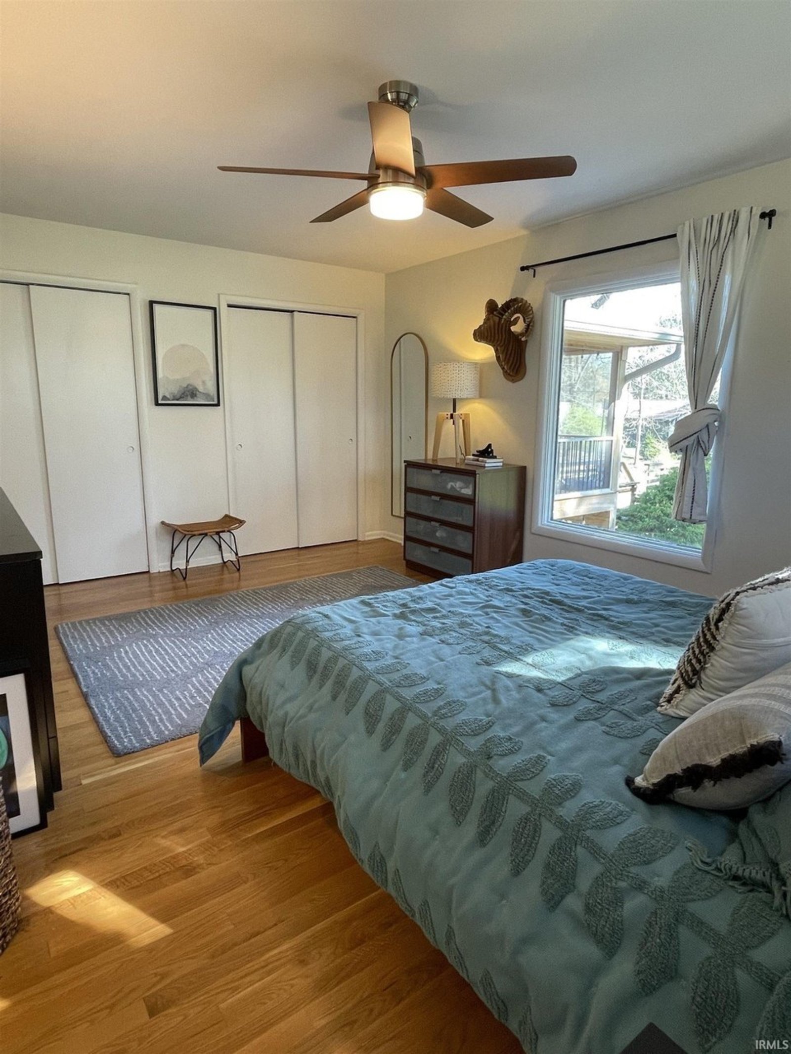 Mid-Century Brick Ranch on Walk-Out Basement—Half-Acre Lot In Town! This immaculate 3-bedroom, 2-bath home offers classic mid-century charm with modern updates, all on a premium half-acre lot right in the heart of town. With 1,700 sq ft on the main level and a semi-finished walk-out basement, you'll enjoy nearly 2,800 sq ft of living space, plus a beautifully landscaped yard that backs to serene woods. Inside, you’ll find gorgeous hardwood flooring in the living and dining rooms. The stunning updated kitchen features quartz countertops, top-of-the-line appliances, ample cabinetry, and a skylight for added natural light. Adjacent to the kitchen is a cozy breakfast nook that opens to a huge screened-in porch, which flows onto a multi-level deck—perfect for entertaining or simply enjoying the peaceful backyard setting. The main level also includes a spacious primary suite, two additional generous bedrooms, and a full hall bath, enhanced with solar tubes for additional brightness. The lower level boasts a large family/recreation room with new carpet and sliding doors that open to the backyard. There’s also a roomy laundry area, abundant storage space, and direct access to an oversized 2-car garage. Tucked in a quiet yet incredibly convenient neighborhood, this home is just 1.5 miles from the IU campus, and close to downtown, parks and trails, restaurants, shopping, and the YMCA.