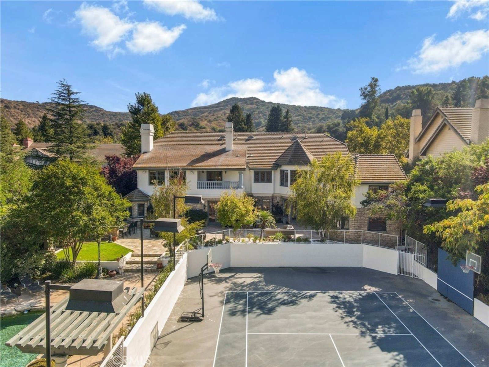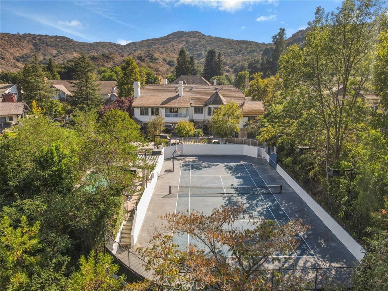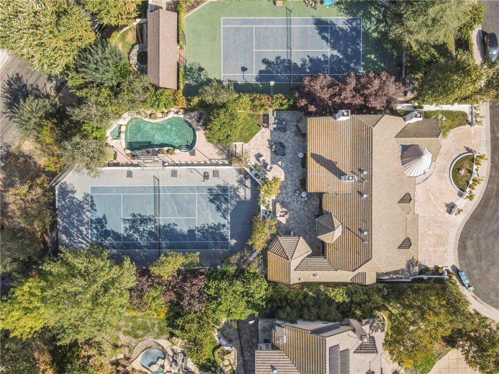 Step into unparalleled luxury in this stunning updated grand gem, ideally situated South of the Blvd in Woodland Hills. This exquisite estate boasts 6 lavish bedrooms and 6.5 opulent bathrooms, all nestled on over half an acre of exquisitely manicured grounds within a tranquil cul-de-sac. Your private oasis features a spectacular rock formation pool and spa, complete with a cascading waterfall, alongside a sunken regulation-lit tennis court for the ultimate in recreational indulgence. The expansive entertainer’s patio, outfitted with a built-in granite BBQ, sets the stage for unforgettable gatherings under the stars. As you enter, be captivated by the soaring cathedral ceilings and a majestic staircase that radiate elegance. The formal living room, adorned with stunning beam ceilings, a cozy fireplace, and magnificent leaded glass windows, seamlessly flows into the oversized family room. Here, a chic wet bar opens to the patio, creating an ideal space for both relaxation and entertaining. The exquisite formal dining room is perfectly designed for grand celebrations and connects to the gourmet kitchen—a culinary dream featuring a generous center island, abundant cabinetry, three ovens, a spacious walk-in pantry, and a charming breakfast nook that overlooks the picturesque patio and tennis court. Additional highlights of this magnificent residence include a maid’s quarters, a sophisticated office/library, a well-appointed laundry room, and direct access to the three-car garage. Venture upstairs to discover four luxurious en suite bedrooms, including a breathtaking master suite that features coved ceilings, dual walk-in closets, and a sumptuous master bathroom that exudes spa-like serenity. Completing this extraordinary property is an attached guest house, boasting a yoga/gym upstairs and a spacious bedroom with a bath downstairs. This remarkable estate seamlessly blends elegance and functionality, offering a lifestyle of sophistication and comfort that you won’t want to miss!