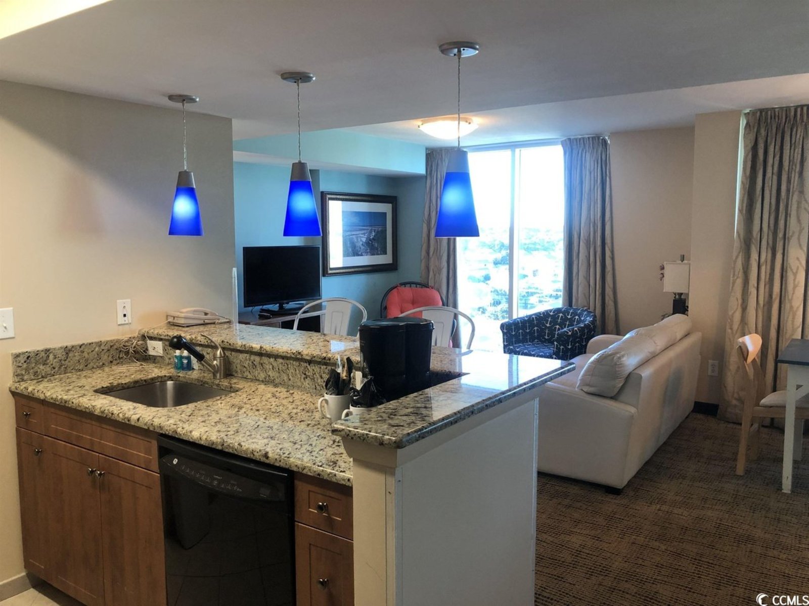 The location is perfect, with walking distance to grocery stores, restaurants, shops and more. This unit features a marsh view, upscale furnishings, fully equipped kitchen, flat screen TV, granite countertops and a washer & dryer. Lots of water amenities such as pools, water slide, hot tubs, lazy river and state of the art fitness center. Schedule a showing today before its gone. * * HOA INCLUDES: electric common, water/sewer, building insurance, trash pickup, electric in unit elevator service, pool service, landscape/law service, manager, master antenna/cable TV, common area maint/repair, internet access and pest control. Schedule a showing to come see this beautiful resort.