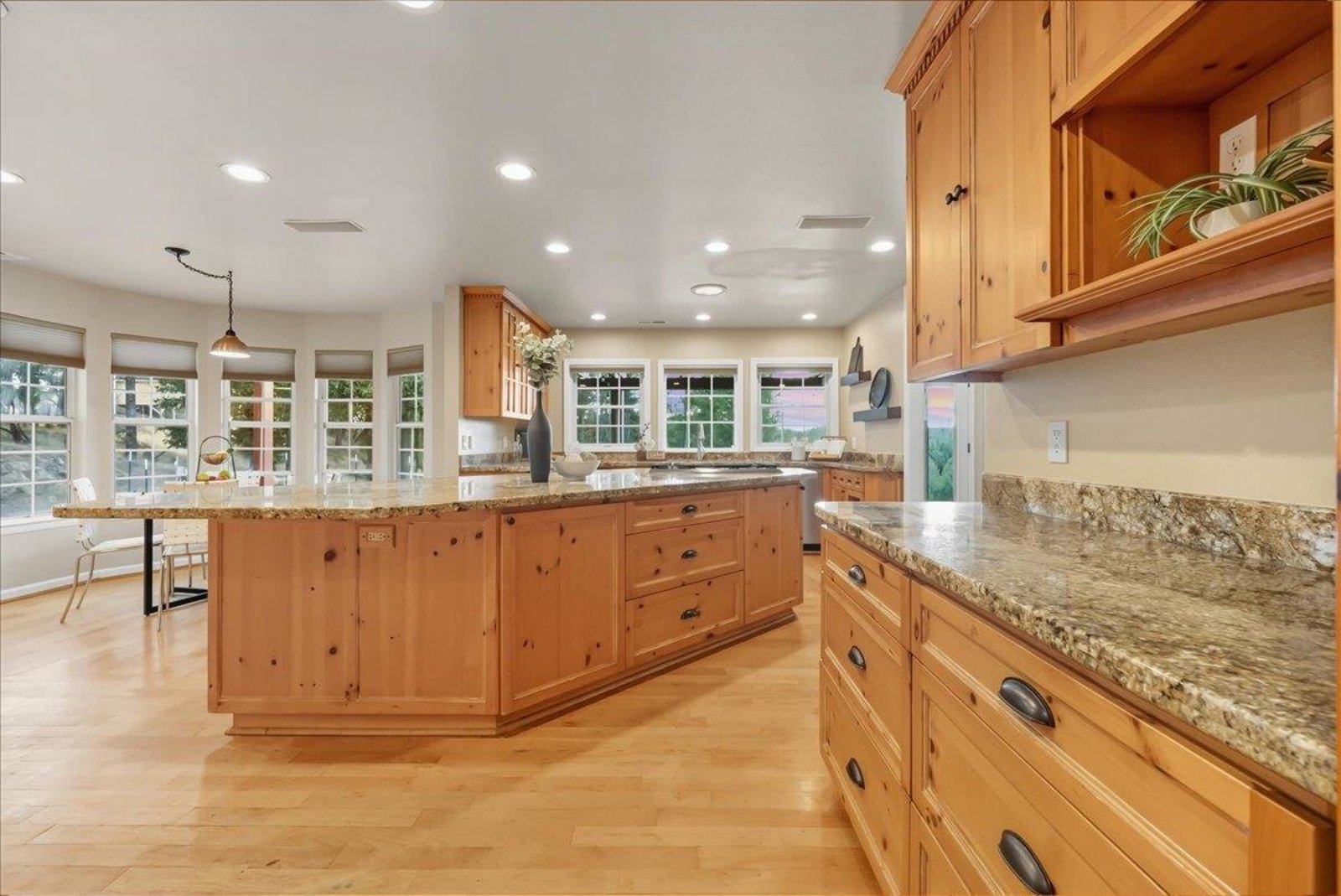 Breathtaking sunsets and an infinity-style pool set the tone for this private single-level home, inviting relaxation and enjoyment. Set on 5.3 acres of natural beauty, the home offers 5 bedrooms, an office, 3 bathrooms, and 3,353 sq. ft. of ranch-style floor plan. The expansive kitchen showcases massive granite countertops, a generous island, and gorgeous knotty pine cabinetry. A formal dining room, lots of large living spaces, and a wet bar with a wine fridge make hosting fun and easy. The primary suite provides a private retreat with a cozy fireplace, sitting area, outdoor access, a walk-in closet, soaking tub, and shower. The guest rooms are very spacious with ample closets. Step outside to enjoy the resort-style Dal Pino infinity pool (2021) and entertainment deck. Energy-conscious upgrades include solar panels (2019), two Tesla batteries (2022), a Quiet Cool whole-house fan (2020), and fiber internet (2022). With its 3-car garage, RV parking, central vacuum, security pre-wire, fenced-in garden, and more, this property is ready for memories to be made!