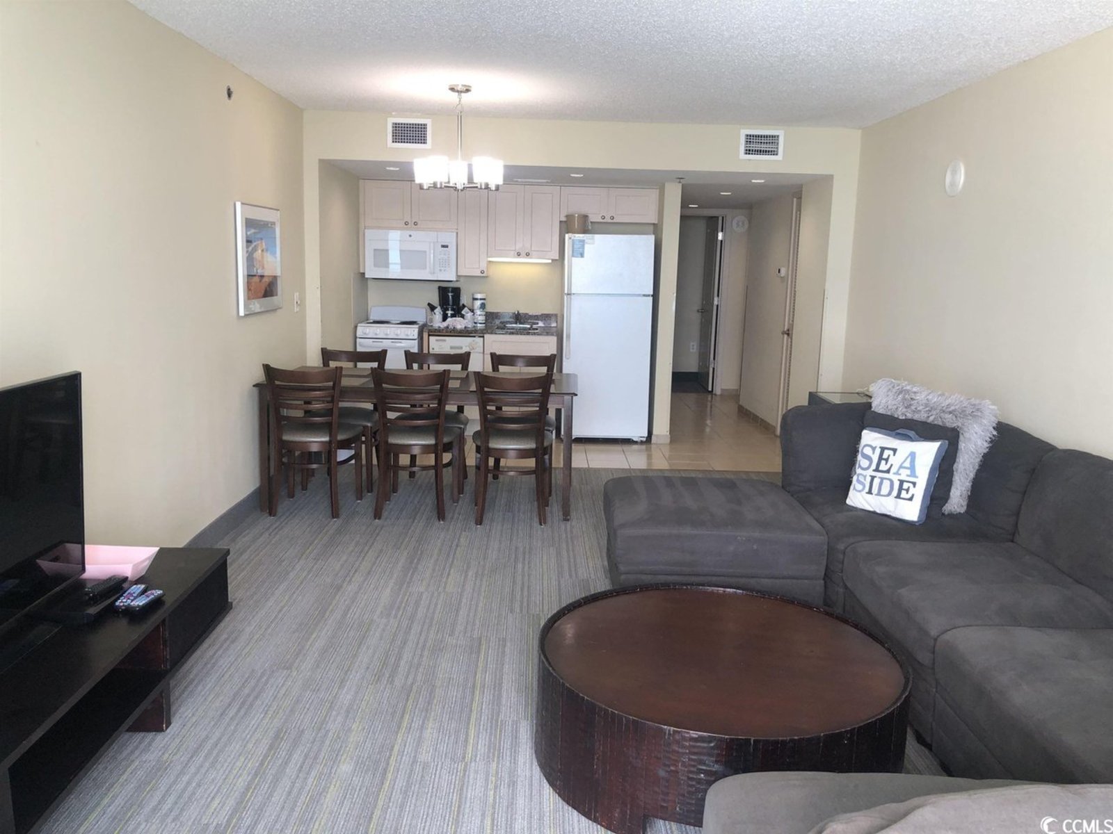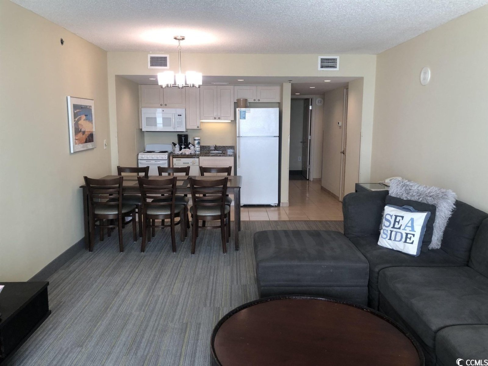 You definitely need to take a moment to stop by and see this fantastic 2BR/2BA direct OCEANFRONT PENTHOUSE condo in the boutique building of Seaside Inn Resort that is located in the Crescent Beach section of North Myrtle Beach. Perfectly located to all of what you want and need in the North Myrtle Beach area. The kitchen and bathrooms have beautiful granite countertops, the master bedroom has two double beds and tiled jacuzzi tub in the master bathroom, the second bedroom has two double beds as well. The living room has a large sectional couch (2020), carpet (2023), drapes (2023) and HVAC (2020). This Penthouse condo is perfect for primary, secondary or rental purposes and move in ready and turn key. Also keep in mind, the monthly HOA dues include all insurance(interior and exterior) and all utilities. The Seaside Inn has great amenities such as oceanfront pool and jacuzzi, indoor lazy river, indoor pool, fitness center and seasonal breakfast room. This property also features an onsite parking garage on the first four floors.