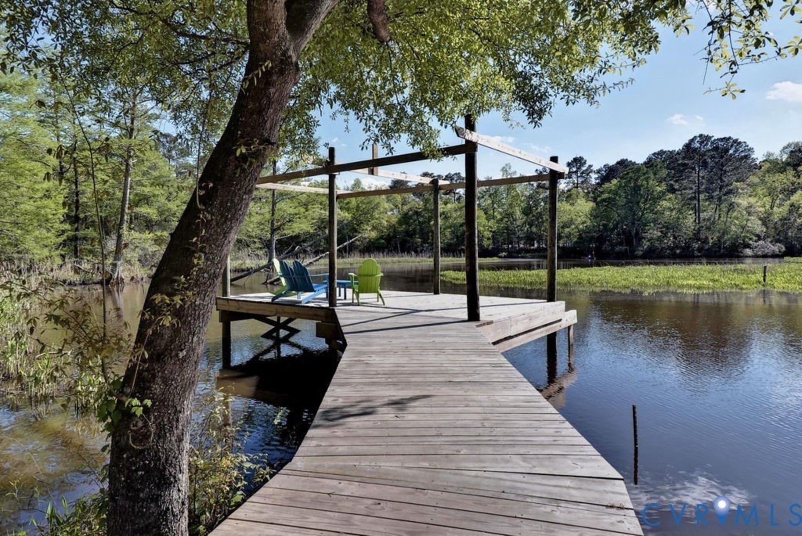 It's true: 16 Acre Horse Farm on Powhatan Creek, leading to the James River, 5 ft MLW, 2500' of shoreline & 3 stall stable with hay storage. The quality of this construction is impeccable, including custom cross saw Brazilian Tiger Oak Cabinets, Engineered & Brazilian hardwood floors, leathered finish granite countertops, tiled shower, 6-G Glo Fiber cable with WIFI coverage out to stable, solar privacy gates and detached garage. Equine Facilities include horse barn with feed-room/tack-room, shaving bin, wooded trails & ample pastures. The waterfront deck and boat dock, with boat access from bank, allow a front row seat to the quiet-natural setting for eagles, blue herons, turtles, and fishing. HVAC 2024, deep well, new septic distribution box, Simply Safe Security. This peaceful rural oasis is only minutes from Colonial Williamsburg, Frothy Moon Brewery and everything Williamsburg. A lifestyle opportunity rarely found. Make sure you notice the custom trash can hut at entrance.