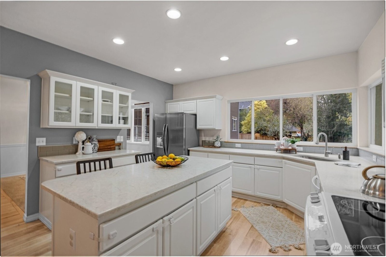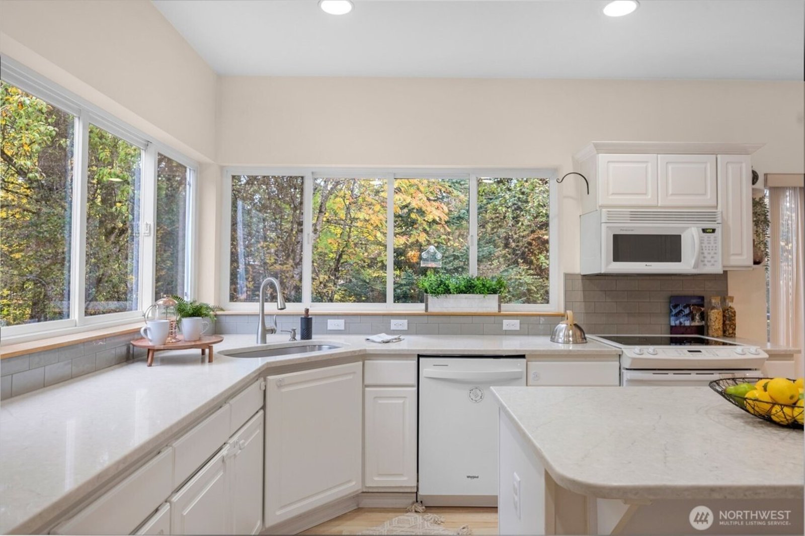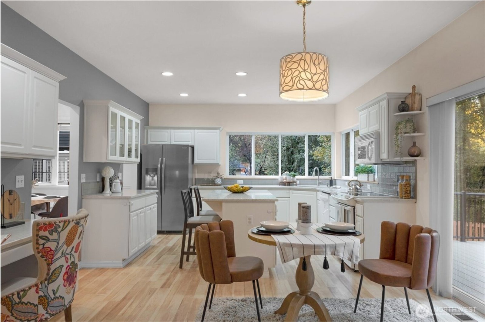 In the desirable Rose's Meadow neighborhood, this peaceful and gorgeous East Hill retreat seamlessly blends comfort, style, and convenience. Soaring 10-ft ceilings, skylights, and expansive windows flood the space with natural light. The flexible layout offers up to 5 bedrooms, including one on the main level, plus a large kitchen with white cabinetry, quartz counters, island, & views of the private, wooded backyard. Enjoy a newer Trex deck, lush landscaping, and serene outdoor living. The primary suite boasts a spa-like 5-pc bath with soaking tub and two massive walk-in closets. Features include A/C, EV charging, gas fireplace, hardwoods, oversized garage, & newer roof (2021). Enjoy easy access to nearby parks, shopping, and top amenities.