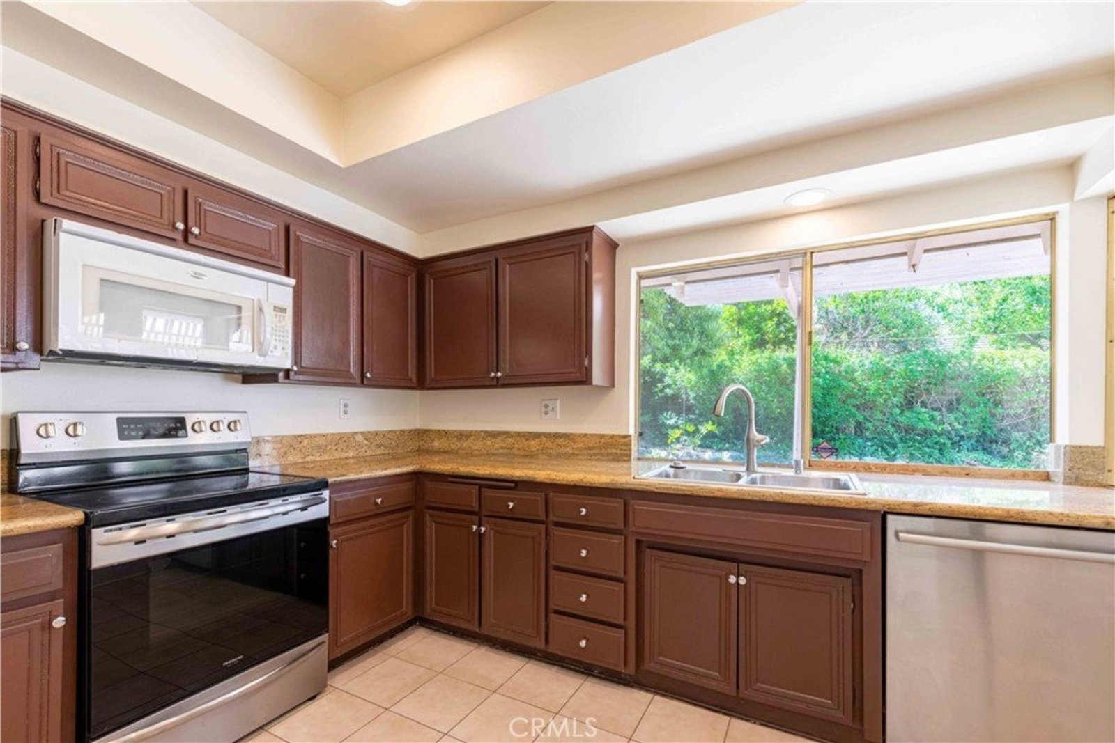 This desirable single-story home in Fountainwood is nestled on a quiet street. The front yard features thoughtfully designed, low-maintenance landscaping. Upon entering, you're welcomed by a tiled walkway that leads to a step-down living room with vaulted ceilings, wood-look flooring, and large windows that offer a view of the front yard. Adjacent to the living room is a bright dining area with a large window and convenient access to the kitchen. The kitchen opens to the family room and breakfast nook, with a sliding glass door that leads to the spacious side and backyard—perfect for indoor-outdoor living. The kitchen also offers ample cabinetry and neutral countertops, all with a view of...