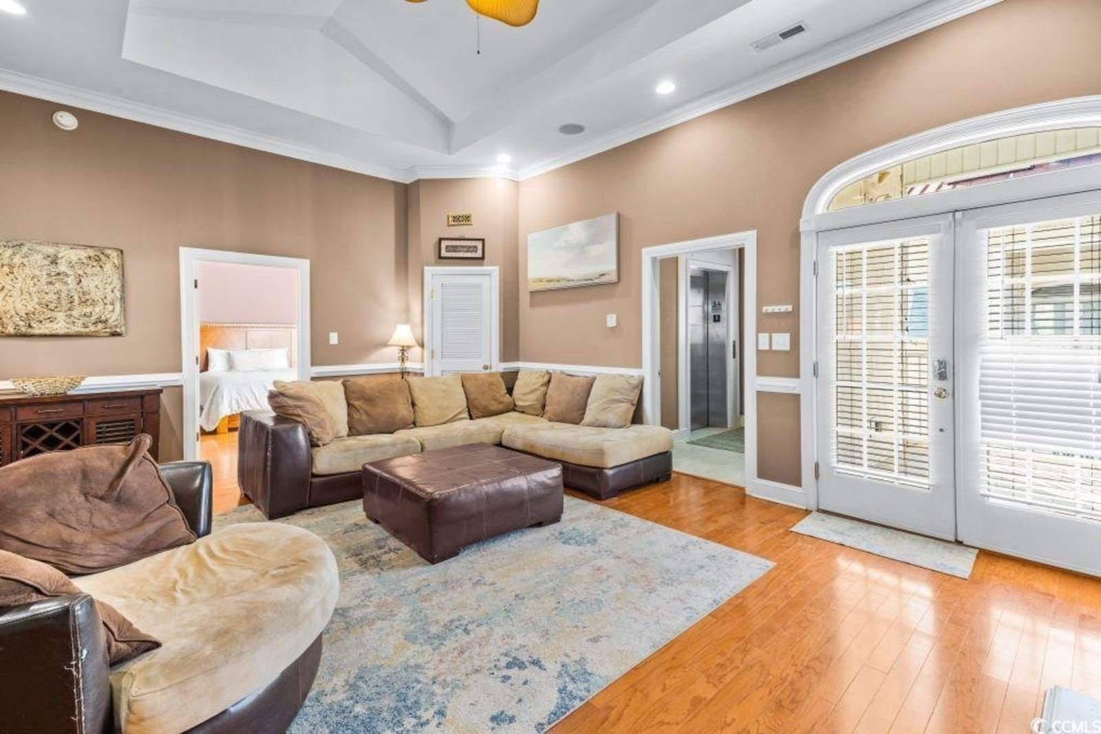 Welcome to your dream home within steps to the ocean in the northern Myrtle Beach Dunes area. As soon as you come up in the Private Elevator and walk in your own foyer for such, you will feel the warmth of this incredibly elegant 4BR/2BA custom built property that spares no expense down to every detail. This custom built “entertainment” condo comes complete with a very unique custom bar that is furnished with a double wine rack, sink, mini fridge and freezer/icemaker, etc. Afforded also is custom cabinets in the kitchen, upgraded stainless appliances, upgraded full size washer/dryer, crown molding throughout, beautiful tile flooring/backsplash and wood floors, stylish furniture and a fireplace in the living room. Large full size flat screen TV’s in the Living Room and all bedrooms. Built in speakers and surround sound throughout the entire property as well. Master Bathroom has a massively large double walk-in shower and also supports a jacuzzi tub on the side. The Bedrooms are plush and cozy and furnished with incredible accents completely designed for that primary, secondary or investment owner. Don’t forget the covered balcony with just a glimpse of the ocean, but only a short stroll away, that can be converted to so much more, and a great place for morning coffee or that evening cocktail or glass of wine. What an entertainment joy this property is! There are no restrictions on motorcycles or golf carts. Private pool for only (4) owner units as well. Private outdoor storage. Lastly, you have your own private secured garage shared by only one other owner underneath on your side with a garage door and door code. Completely unaffected by any weather the day may bring directly to your unit. This can be a great rental property, but it would be an INCREDIBLE second home or primary residence as well.