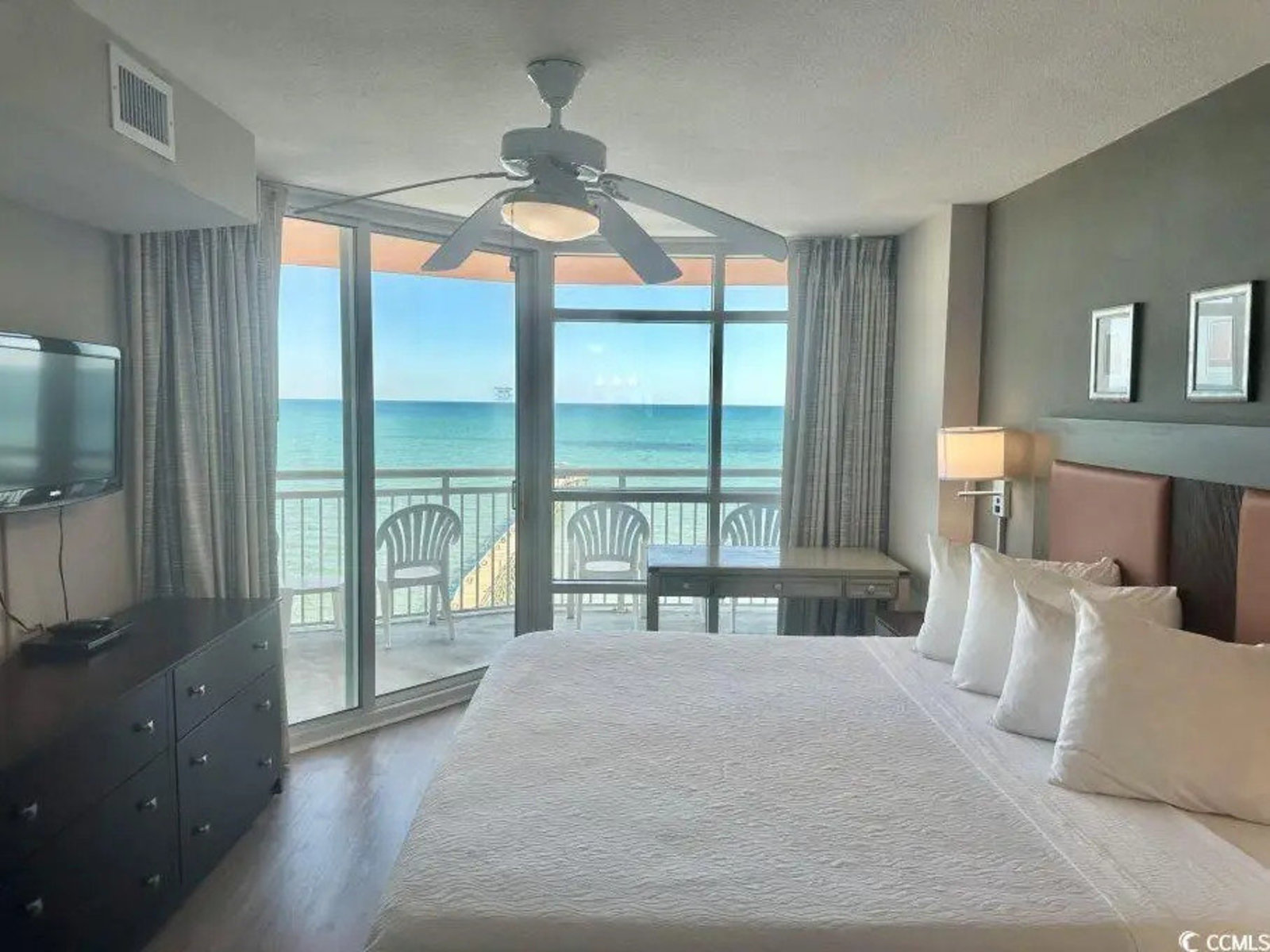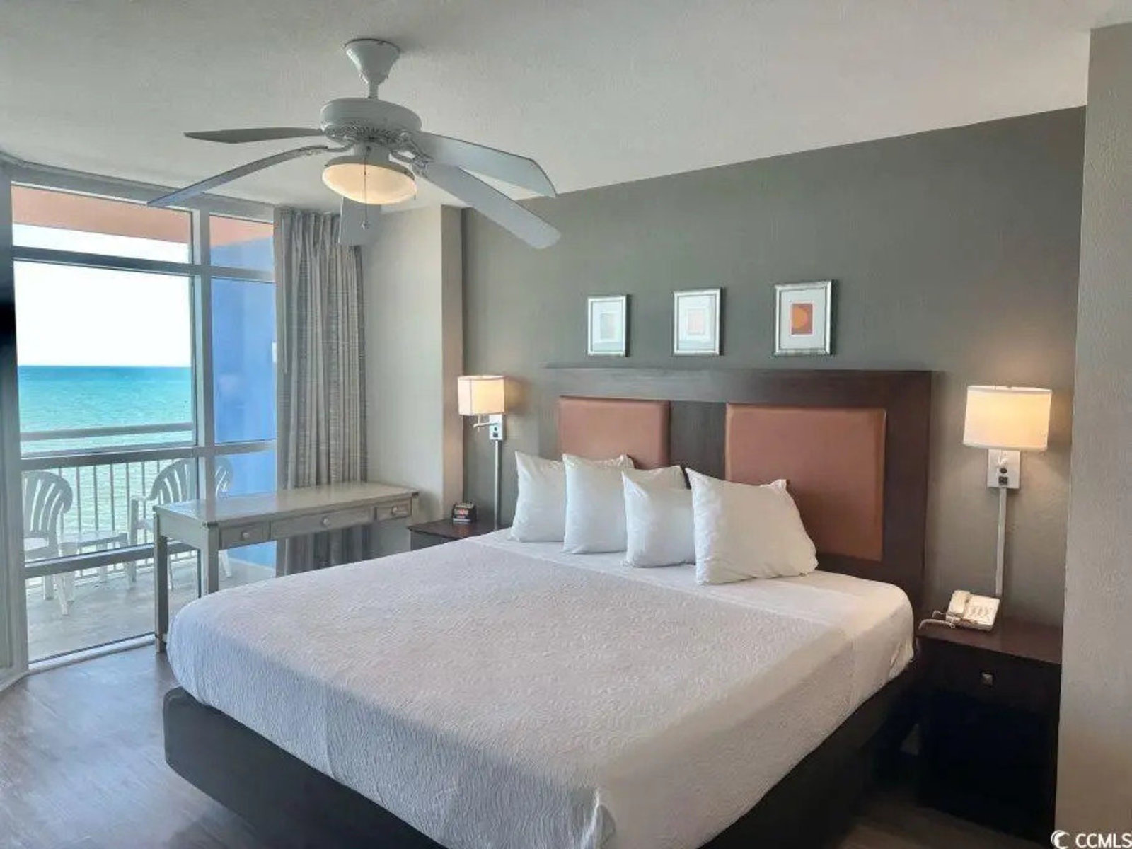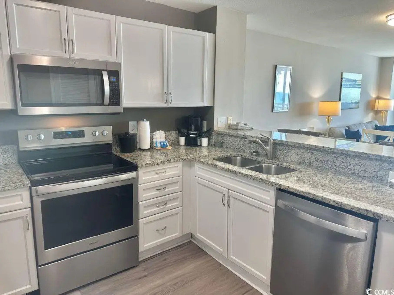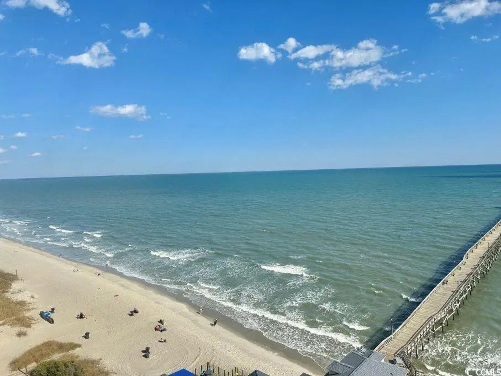 Step into “paradise on the ocean” with this beautifully updated 2BR/2BA OCEANFRONT condo in the highly sought after Prince Resort in the Cherry Grove section of North Myrtle Beach overlooking the pier. Offering unobstructed oceanfront and coastline views. This unit is “Gold” rated with the onsite rental company and has many upgrades including: luxury vinyl flooring (2022), newer mattresses (2023), sleeper sofa, stainless steel dishwasher, refrigerator, stove (2019), washer/dryer (2018) and HVAC (2016). Also includes granite countertops, (3) LED flat screen TV’s, updated faucets, large bathroom mirror with 2nd vanity light set, stylish furniture, white bathroom and kitchen cabinets and new drapes. You will love the large private balcony and the beautiful view from the 12th floor to see the majestic sunrises over the ocean. and the owners will be replacing the current chairs with new white Adirondack chairs (April 2025) This unit has it all! Prince Resort is steps to the Cherry Grove Pier as well. Tower I features heated swimming pool, two hot tubs, mushroom waterfall kiddie pool and restaurants. Tower II (across the street) features a state of the art fitness room, rooftop pool, lazy river, two hot tubs and a kiddie pool. HOA is all inclusive and includes all utilities and all insurance (HO6 contents and building insurance). This is a must see to appreciate the modern and contemporary upgrades the seller has spared no expense on.