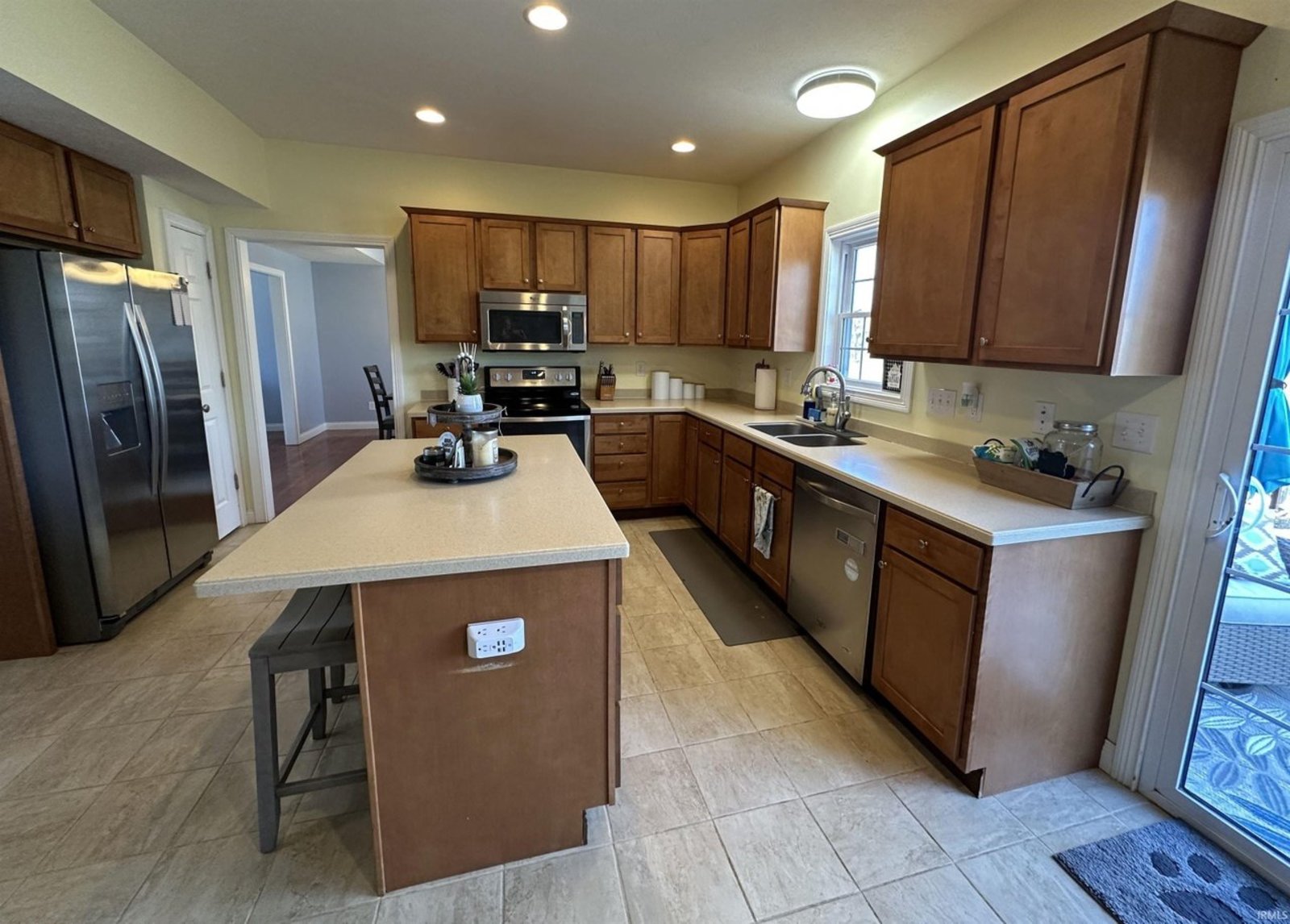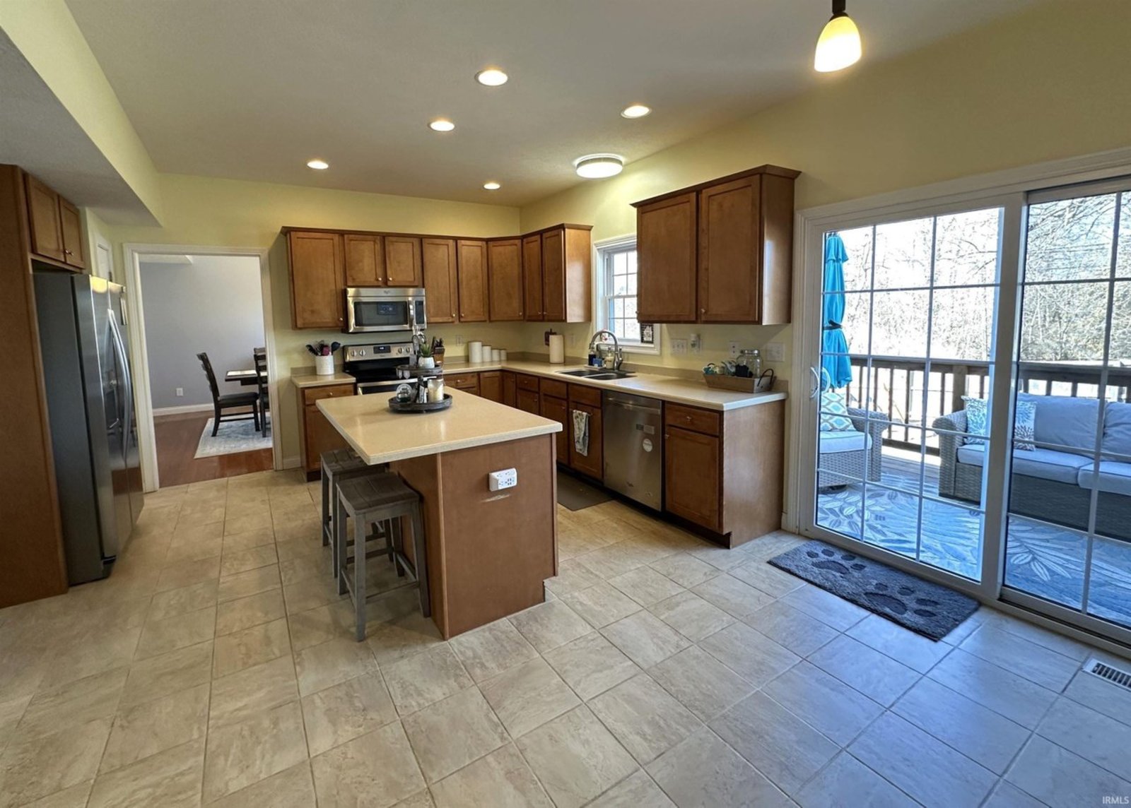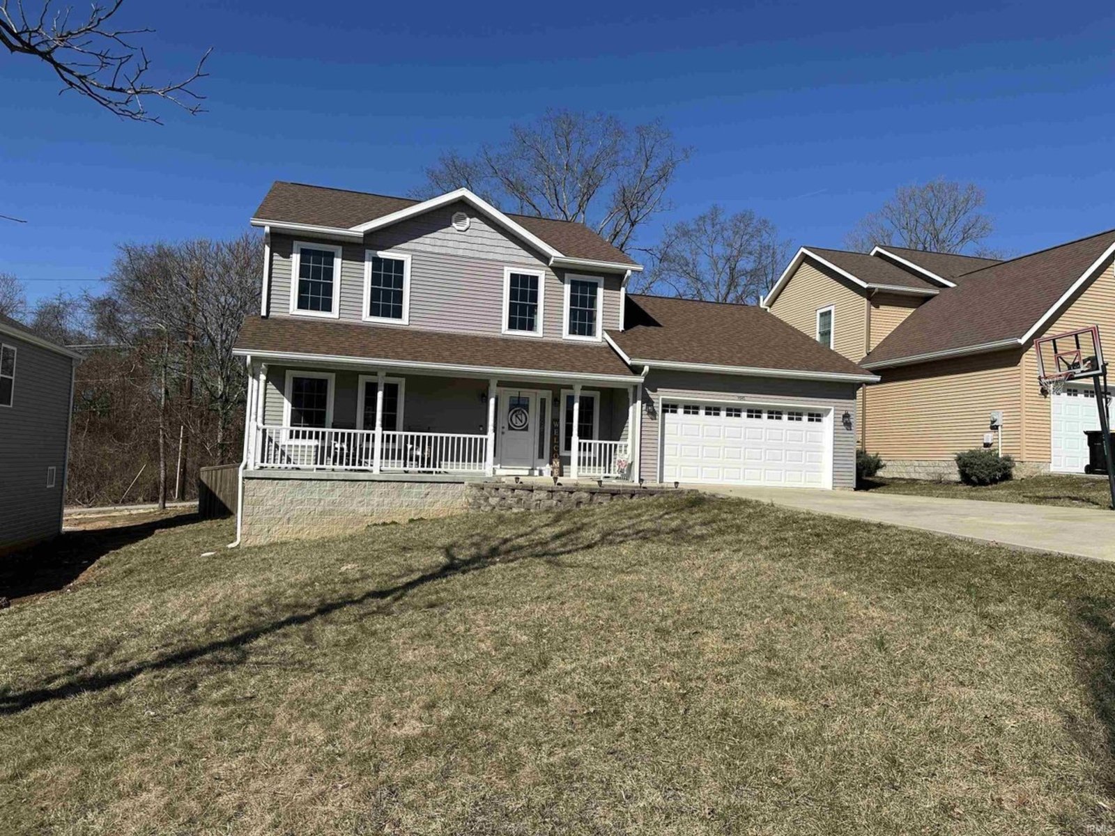 This beautifully maintained and generously sized 4-bedroom home is nestled in the sought-after Ridgefield subdivision, offering a perfect blend of elegance, comfort, and convenience. From the moment you step inside, you'll be captivated by the warm ambiance of gleaming solid hardwood floors that flow throughout the main level, while the kitchen, laundry room, and bathrooms are adorned with stylish ceramic tile. Soaring nine-foot ceilings enhance the sense of space and grandeur. Step outside to a private backyard oasis, fully enclosed with a privacy fence, featuring a charming deck and patio—ideal for outdoor gatherings or peaceful moments of relaxation. The inviting covered front porch provides the perfect spot to sip your morning coffee while rocking gently in the breeze. Inside, this home offers an abundance of living space, including a formal living room, a cozy family room, and an elegant dining room, perfect for hosting special occasions. The bright and spacious eat-in kitchen is a culinary delight, featuring a large island, an abundance of cabinetry, and sleek solid-surface acrylic countertops, making meal preparation a joy. Upstairs, the luxurious master suite is a true retreat, boasting two expansive walk-in closets and a spa-like en-suite bath, complete with a dual-sink vanity, a deep garden tub for soaking away the stresses of the day, and a beautifully tiled shower with a sleek glass door. The additional bedrooms are equally spacious and inviting, providing comfort and privacy for family and guests alike. Ideally located just north of Bloomington North High School, this exceptional home offers easy access to northside shopping, dining, and I-69. Don’t miss the opportunity to experience this stunning home in person—schedule your private tour today!