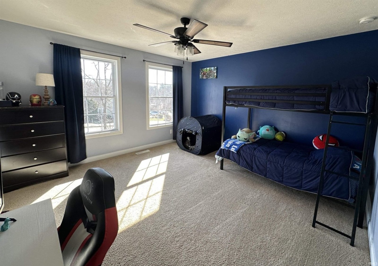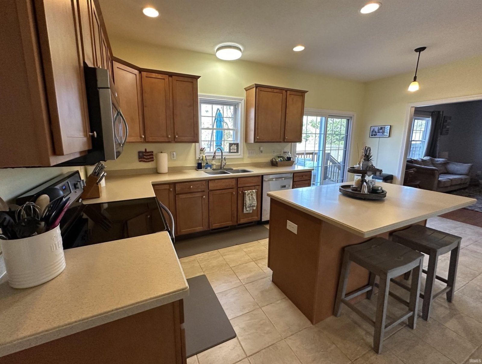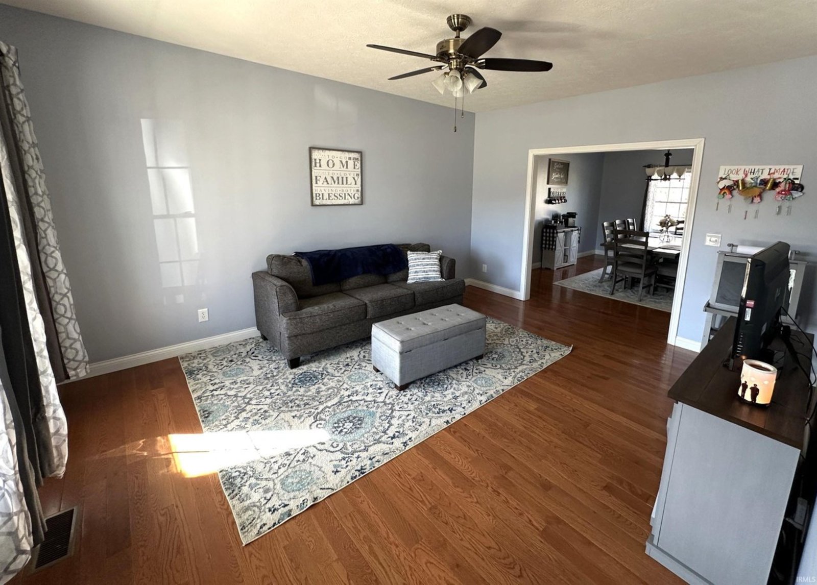 This beautifully maintained and generously sized 4-bedroom home is nestled in the sought-after Ridgefield subdivision, offering a perfect blend of elegance, comfort, and convenience. From the moment you step inside, you'll be captivated by the warm ambiance of gleaming solid hardwood floors that flow throughout the main level, while the kitchen, laundry room, and bathrooms are adorned with stylish ceramic tile. Soaring nine-foot ceilings enhance the sense of space and grandeur. Step outside to a private backyard oasis, fully enclosed with a privacy fence, featuring a charming deck and patio—ideal for outdoor gatherings or peaceful moments of relaxation. The inviting covered front porch provides the perfect spot to sip your morning coffee while rocking gently in the breeze. Inside, this home offers an abundance of living space, including a formal living room, a cozy family room, and an elegant dining room, perfect for hosting special occasions. The bright and spacious eat-in kitchen is a culinary delight, featuring a large island, an abundance of cabinetry, and sleek solid-surface acrylic countertops, making meal preparation a joy. Upstairs, the luxurious master suite is a true retreat, boasting two expansive walk-in closets and a spa-like en-suite bath, complete with a dual-sink vanity, a deep garden tub for soaking away the stresses of the day, and a beautifully tiled shower with a sleek glass door. The additional bedrooms are equally spacious and inviting, providing comfort and privacy for family and guests alike. Ideally located just north of Bloomington North High School, this exceptional home offers easy access to northside shopping, dining, and I-69. Don’t miss the opportunity to experience this stunning home in person—schedule your private tour today!