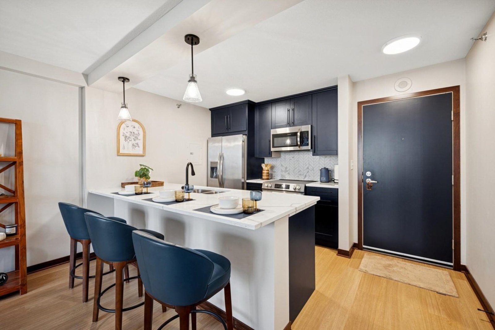 NEW price, $134,900. Seller listening to market. Professionally remodeled in 2023, Centre Village 1 bedroom. Every inch of this unit has been meticulously updated. New Knockdown ceilings, quartz countertops, cabinets, (soft close doors and drawers), flooring, walls, tile wall fireplace and mantle, doors, closet shelving, tile shower, vanity, plumbing, fixtures, stainless steel appliance package, disposal, and electrical upgrades. Centre Village has recently completed common area renovations that includes windows, lobby areas, conference room, fitness center, sauna, hot tub, pool deck, party room, and lounge. Fantastic downtown location: with direct skyway access. Walk to US Bank Stadium, The Armory, The Normandy kitchen, Trader Joes, and so much more! This unit rivals new construction at a fraction of the price. Request a showing today!