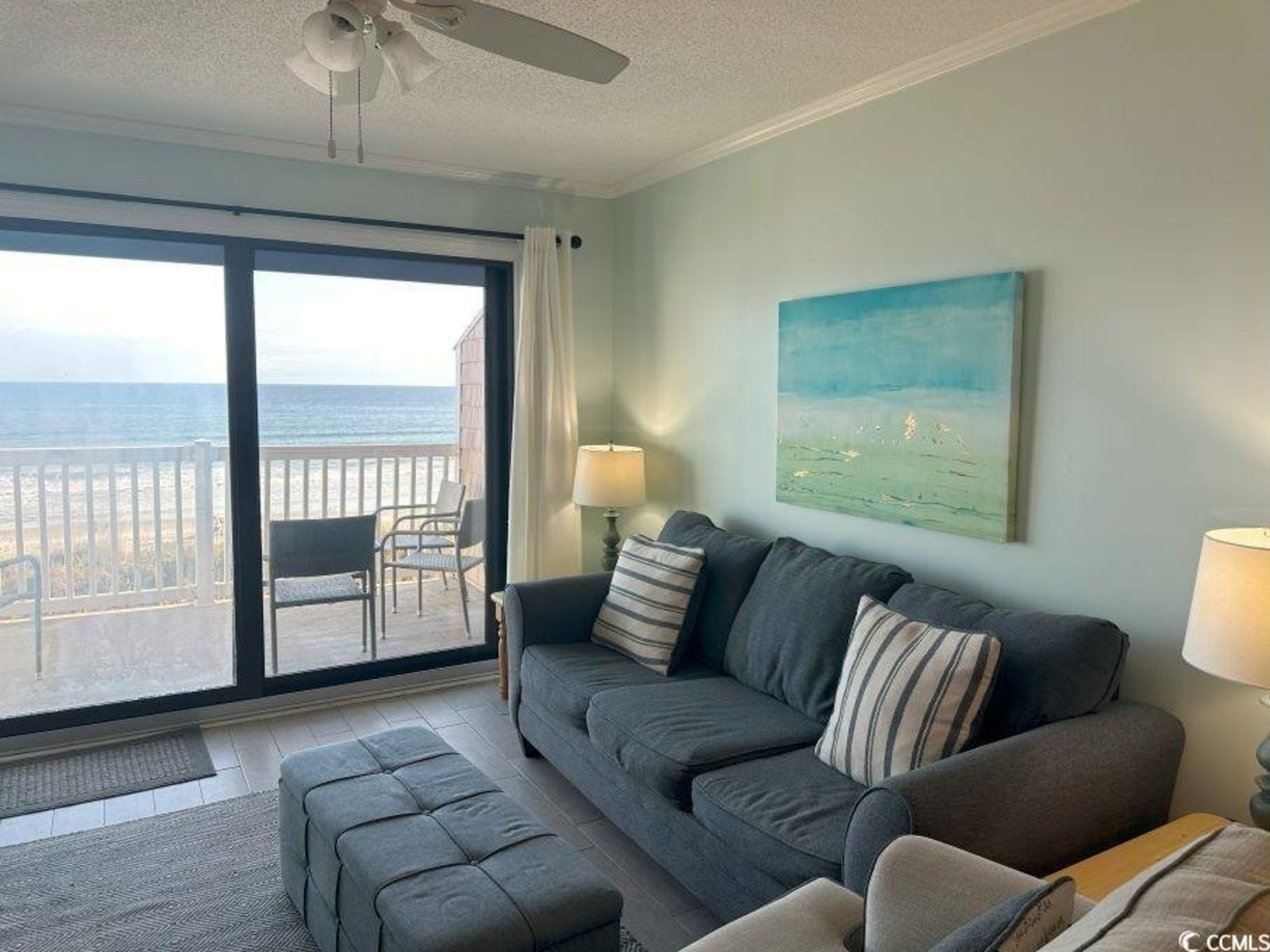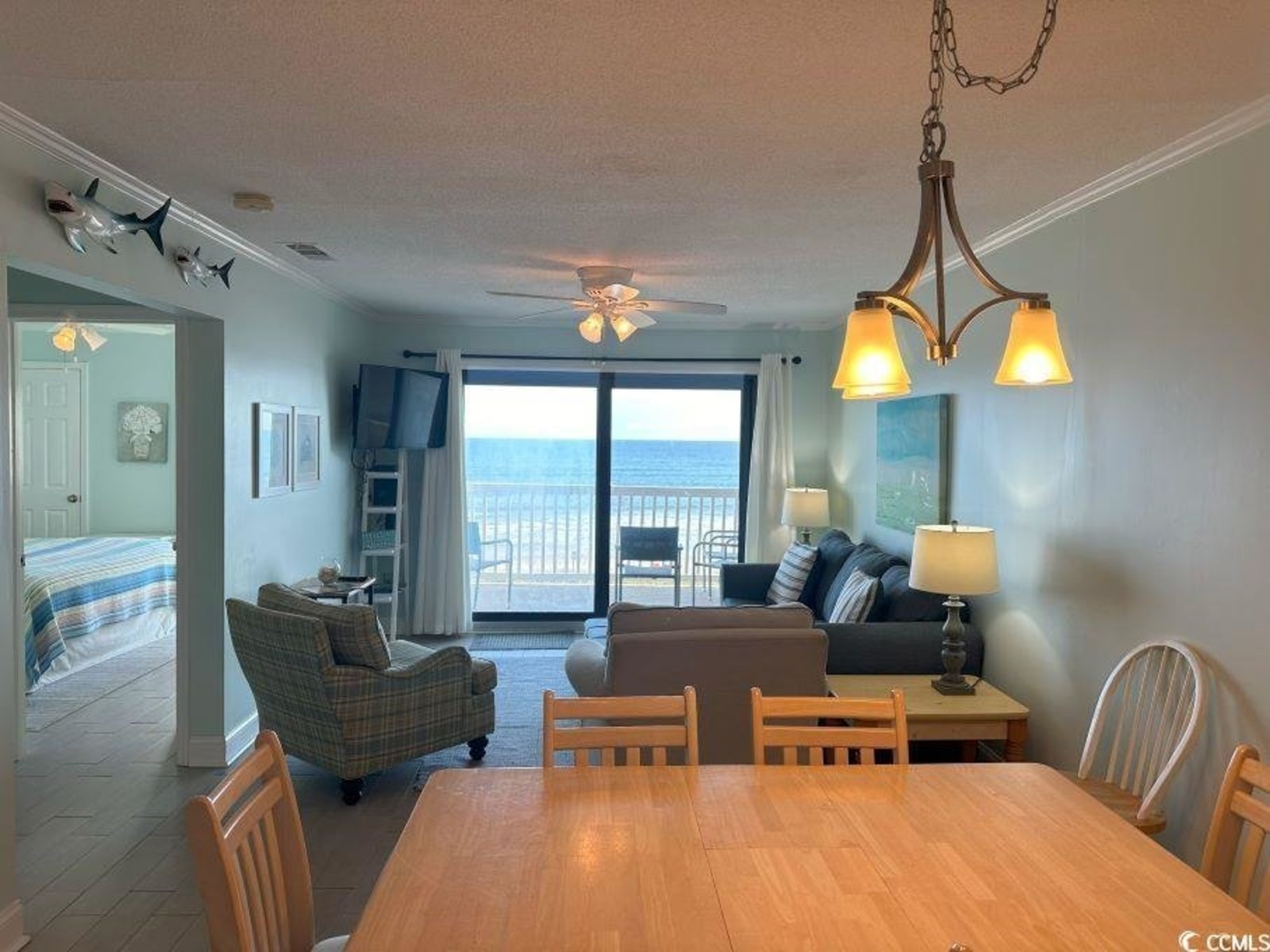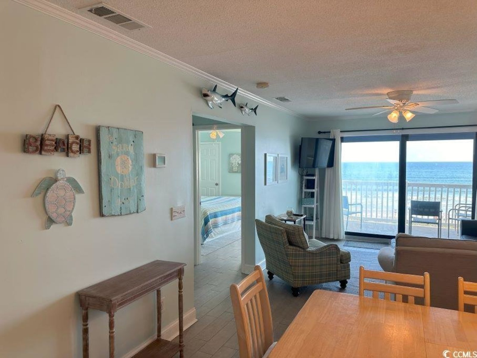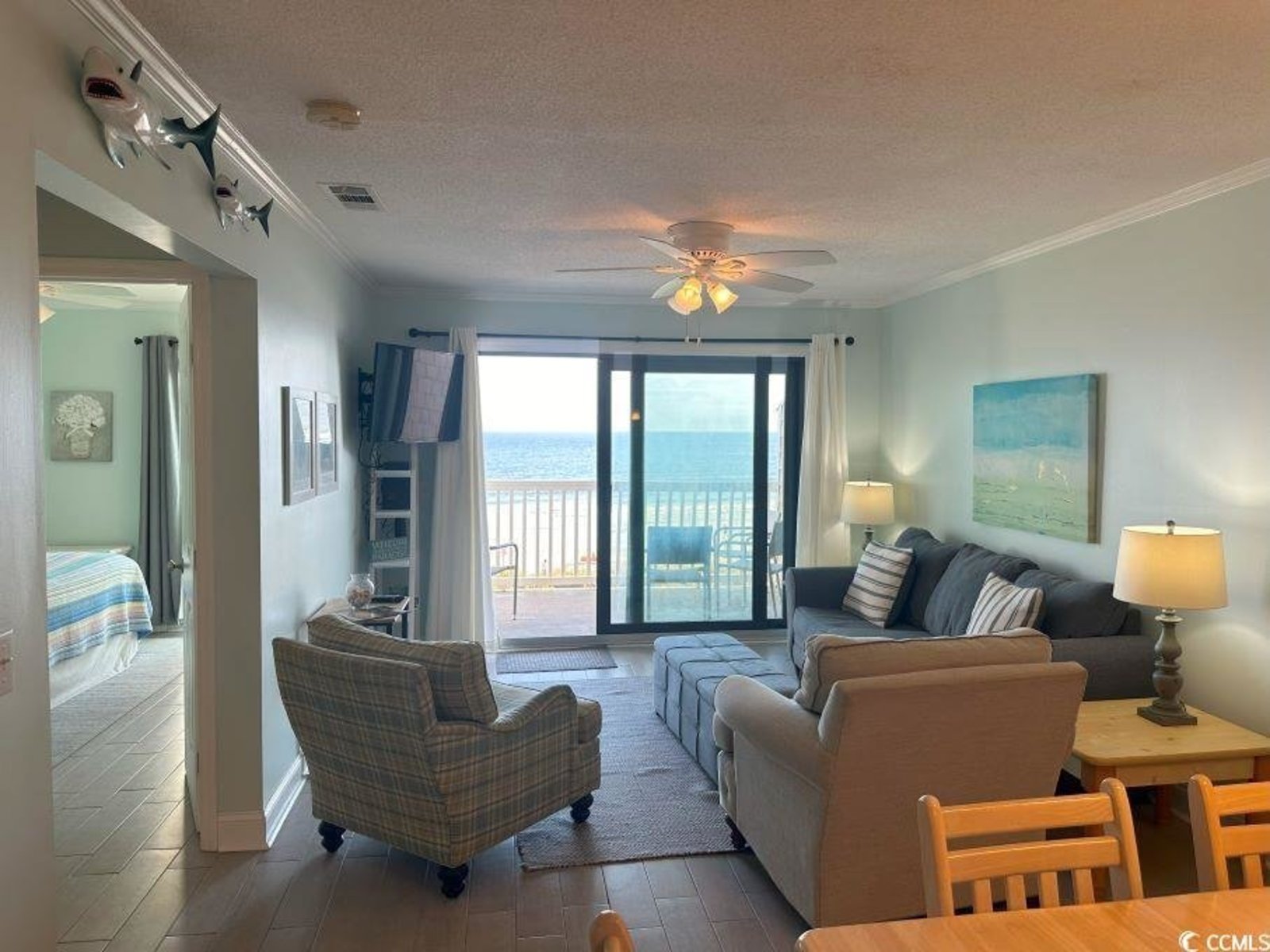 Welcome to your dream escape that was featured on “HGTV’s Beachfront Bargain Hunt Renovation” show, episode: “Beachfront or Bust”. This appointed 2 bedroom/2bath oceanfront property was completely renovated. This unit has many upgrades such as granite countertops, stylish back splash in the kitchen, tile floors throughout, custom cabinets, coffee bar, new HVAC unit (2023), tile walk in shower, upgraded furniture, etc. This amazing unit has breathtaking, uninterrupted oceanfront views. Wake up to the sound of the waves and enjoy your morning coffee on the spacious private balcony overlooking the beautiful Cherry Grove beach and pristine coastline or enjoy a short stroll to the oceanfront pool to cool off on a hot sunny day. Whether you are searching for a second home getaway, a full-time residence or an investment property, this condo is a perfect blend of comfort and luxury with plenty of possibilities.