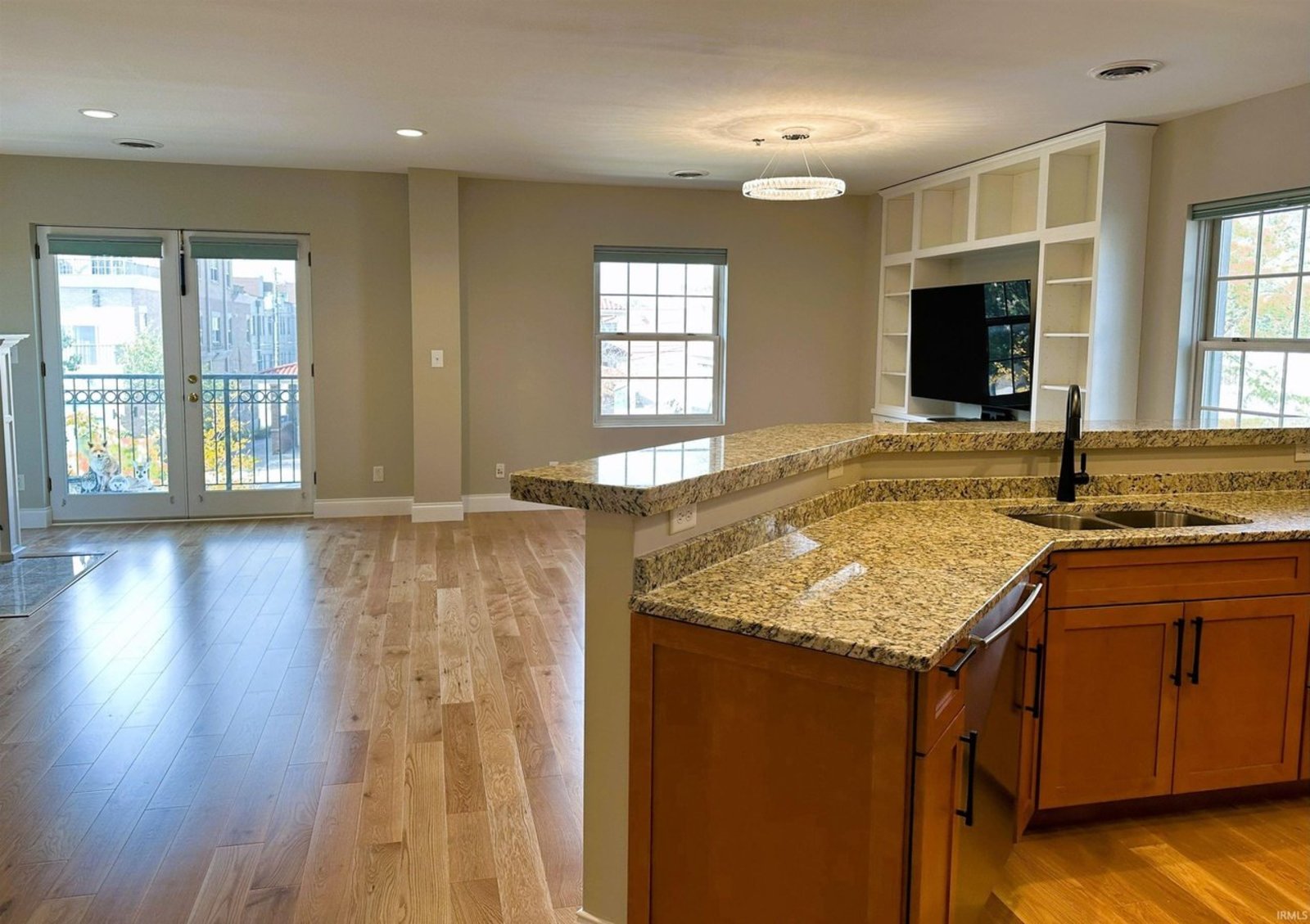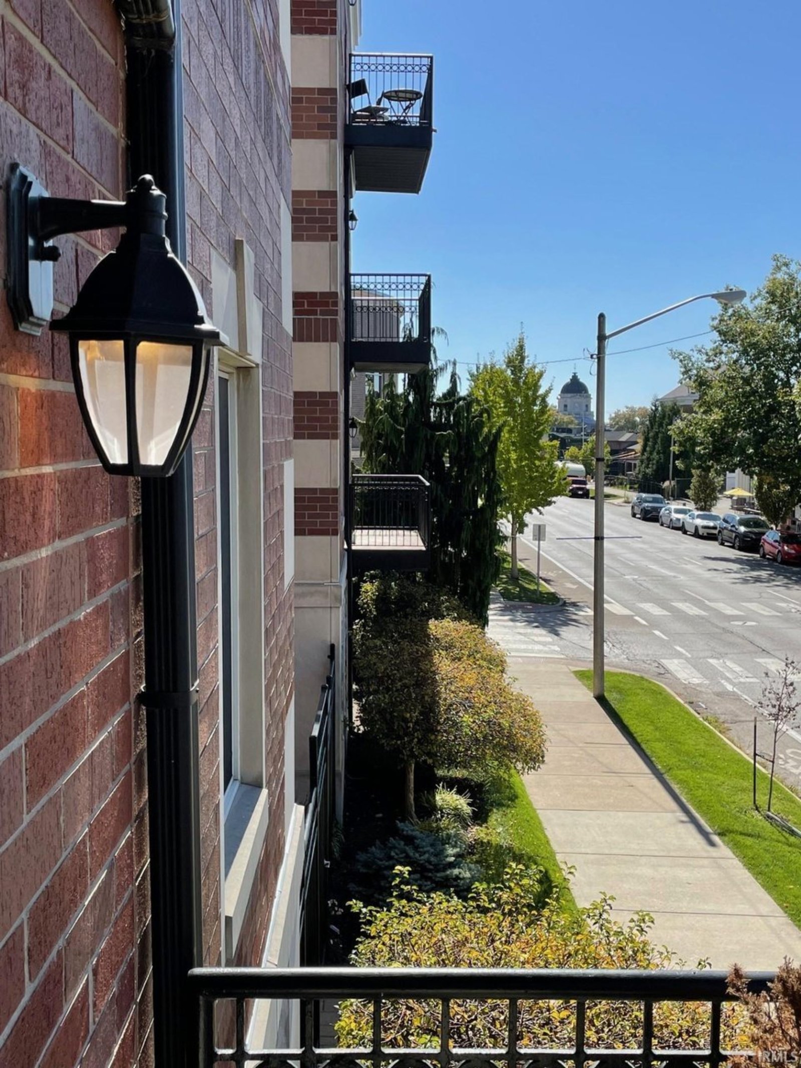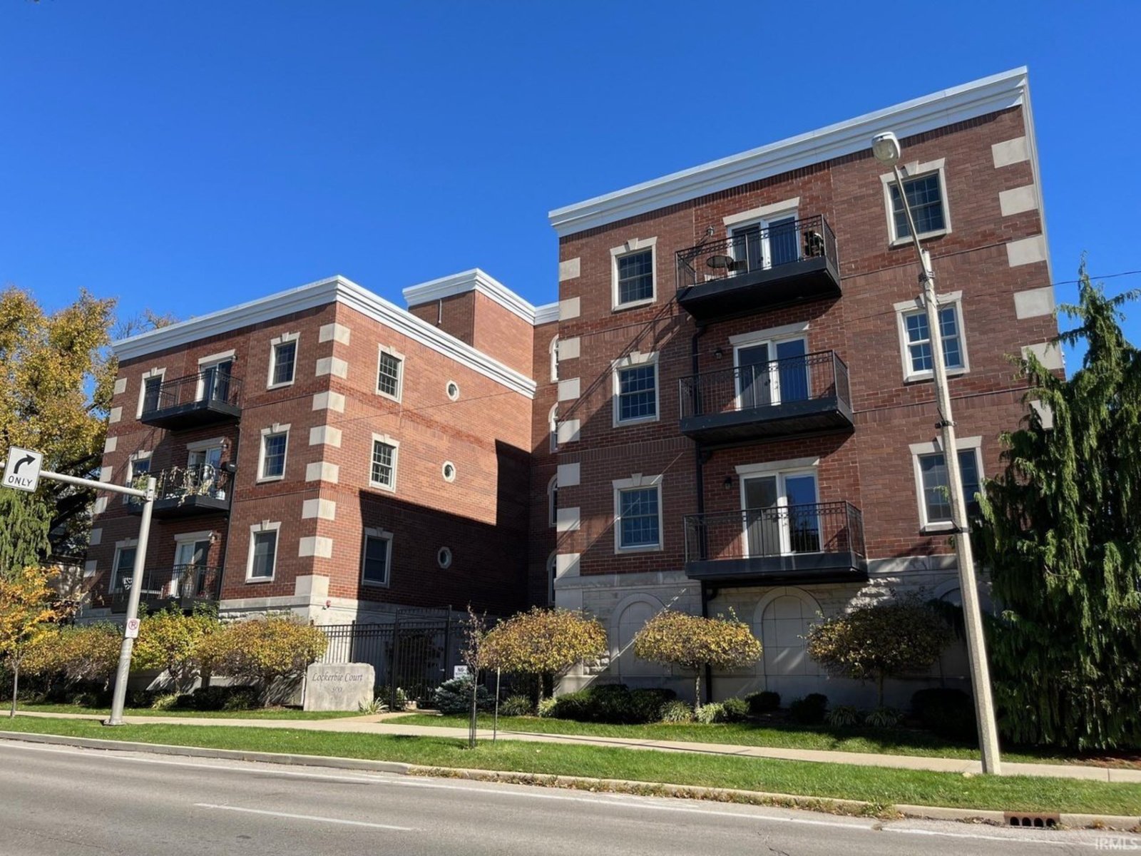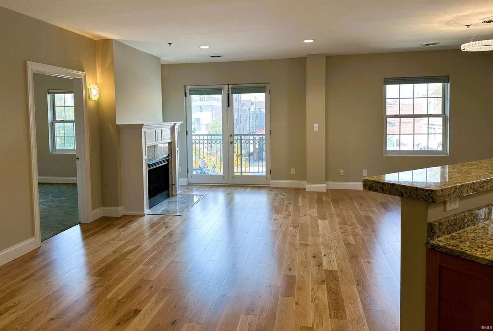 Completely remodeled from top to bottom, this second floor condo offers a modern, beautiful living space that's move-in ready. The thoughtfully designed floor plan features split bedrooms and an open kitchen, living, and dining area. It includes two full bathrooms, ample closets, and a spacious utility/laundry room. The kitchen is a chef's dream with double ovens, a gas cooktop, stainless appliances, granite countertops, and custom cabinetry, perfect for cooking and entertaining. The main living area features a cozy gas log fireplace and warm oak floors. New window coverings allow in natural light while preserving privacy. The bedrooms have new carpet for a quiet and comfortable atmosphere. The bathrooms are tiled for easy maintenance, with the main bathroom offering a jetted tub, tiled shower, and a walk-in closet. Natural light fills the condo with windows on three sides. You can enjoy downtown views from the balcony and admire the architectural charm of the full brick and limestone building. Additional features include a storage room on the main level and two side-by-side parking spaces. The building also provides an exercise room for owners. Located in the heart of Bloomington, it's within walking distance of the city's best restaurants and businesses.