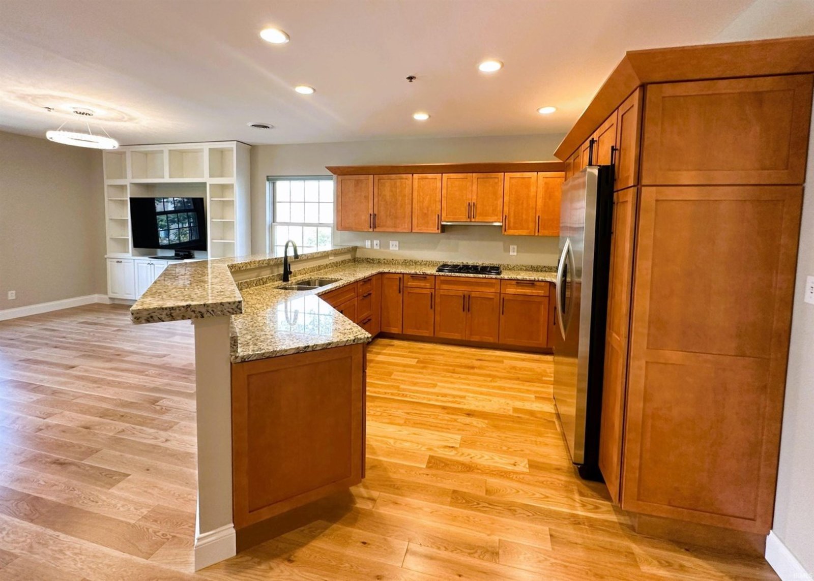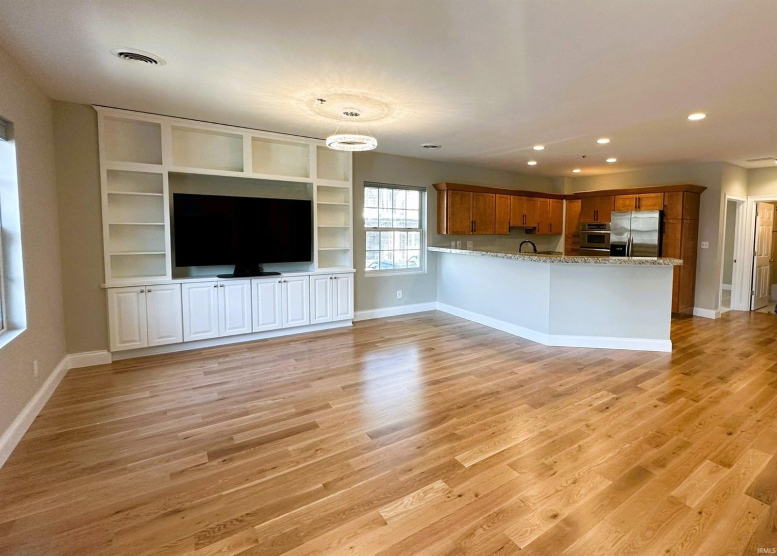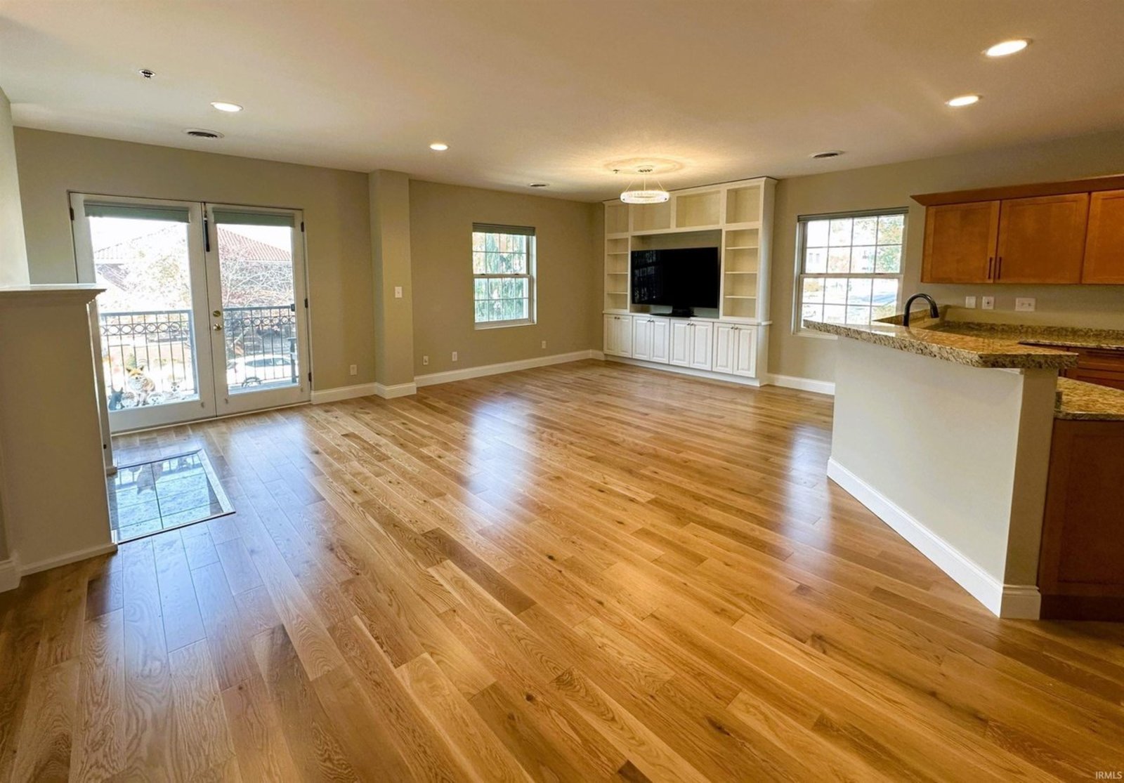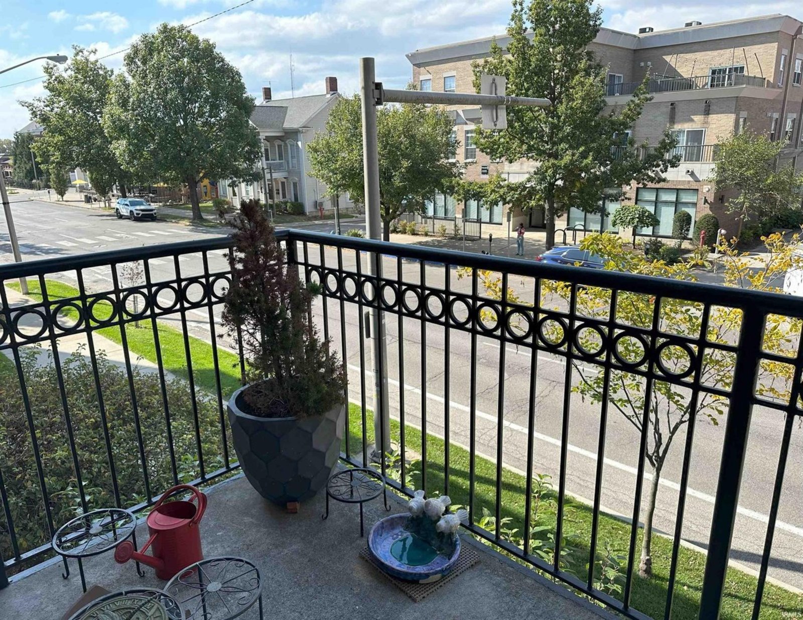 Completely remodeled from top to bottom, this second floor condo offers a modern, beautiful living space that's move-in ready. The thoughtfully designed floor plan features split bedrooms and an open kitchen, living, and dining area. It includes two full bathrooms, ample closets, and a spacious utility/laundry room. The kitchen is a chef's dream with double ovens, a gas cooktop, stainless appliances, granite countertops, and custom cabinetry, perfect for cooking and entertaining. The main living area features a cozy gas log fireplace and warm oak floors. New window coverings allow in natural light while preserving privacy. The bedrooms have new carpet for a quiet and comfortable atmosphere. The bathrooms are tiled for easy maintenance, with the main bathroom offering a jetted tub, tiled shower, and a walk-in closet. Natural light fills the condo with windows on three sides. You can enjoy downtown views from the balcony and admire the architectural charm of the full brick and limestone building. Additional features include a storage room on the main level and two side-by-side parking spaces. The building also provides an exercise room for owners. Located in the heart of Bloomington, it's within walking distance of the city's best restaurants and businesses.