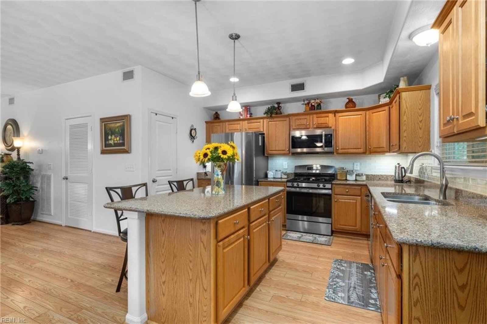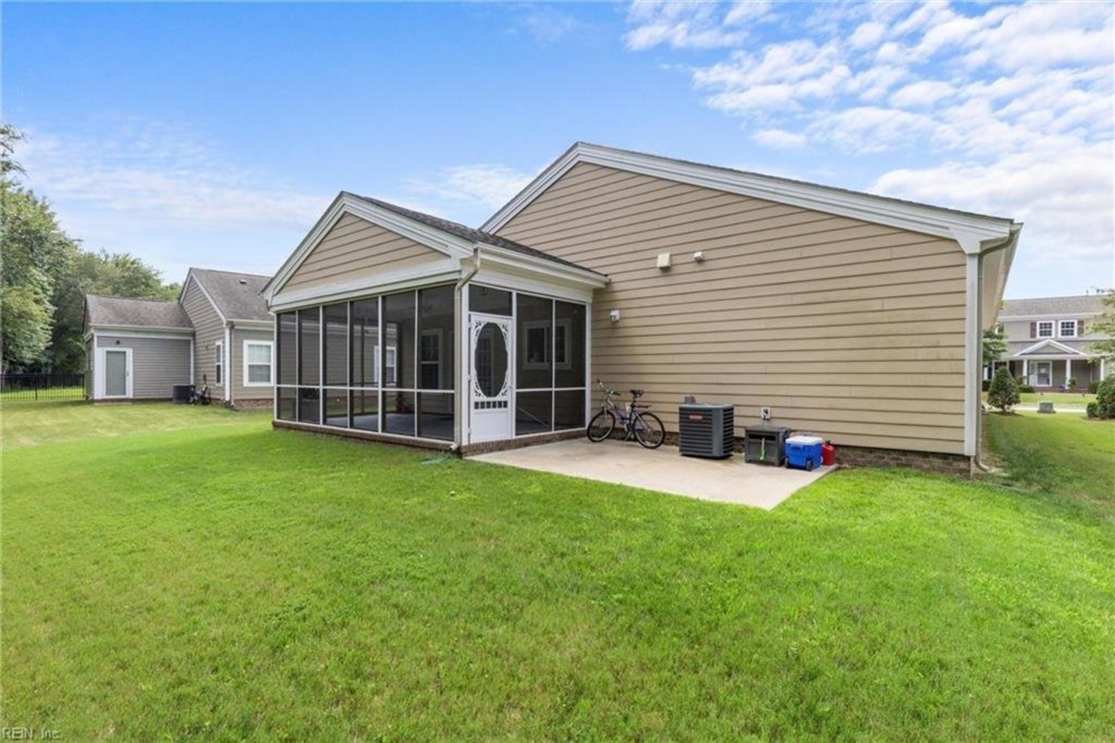 Don’t miss this rare opportunity to own an original-owner, immaculately maintained single-family detached unit with the convenience & peace of mind of a condo lifestyle! Thoughtfully upgraded with fresh paint (2023), vinyl-wrapped trim for low maintenance, & quartz countertops with tile backsplash & newer appliances in the kitchen. The recently remodeled bathrooms shine with double vanity marble tops, walk-in tile surround showers with seating, & raised toilets for added comfort & accessibility. You'll appreciate updated recessed lighting & new light fixtures inside & out. Enjoy outdoor living in your screened-in porch with French doors, custom shades, & painted floor, or relax on the spacious 14'x14' patio on a private lot backing up to the woods. Located in a desirable condo community with 3 pools, a clubhouse, walking paths, 2 playgrounds, a large sports field, pavilions, & gazebos. Move-in ready, low maintenance, & full of comfort—this is the easy-living home you’ve been waiting for!