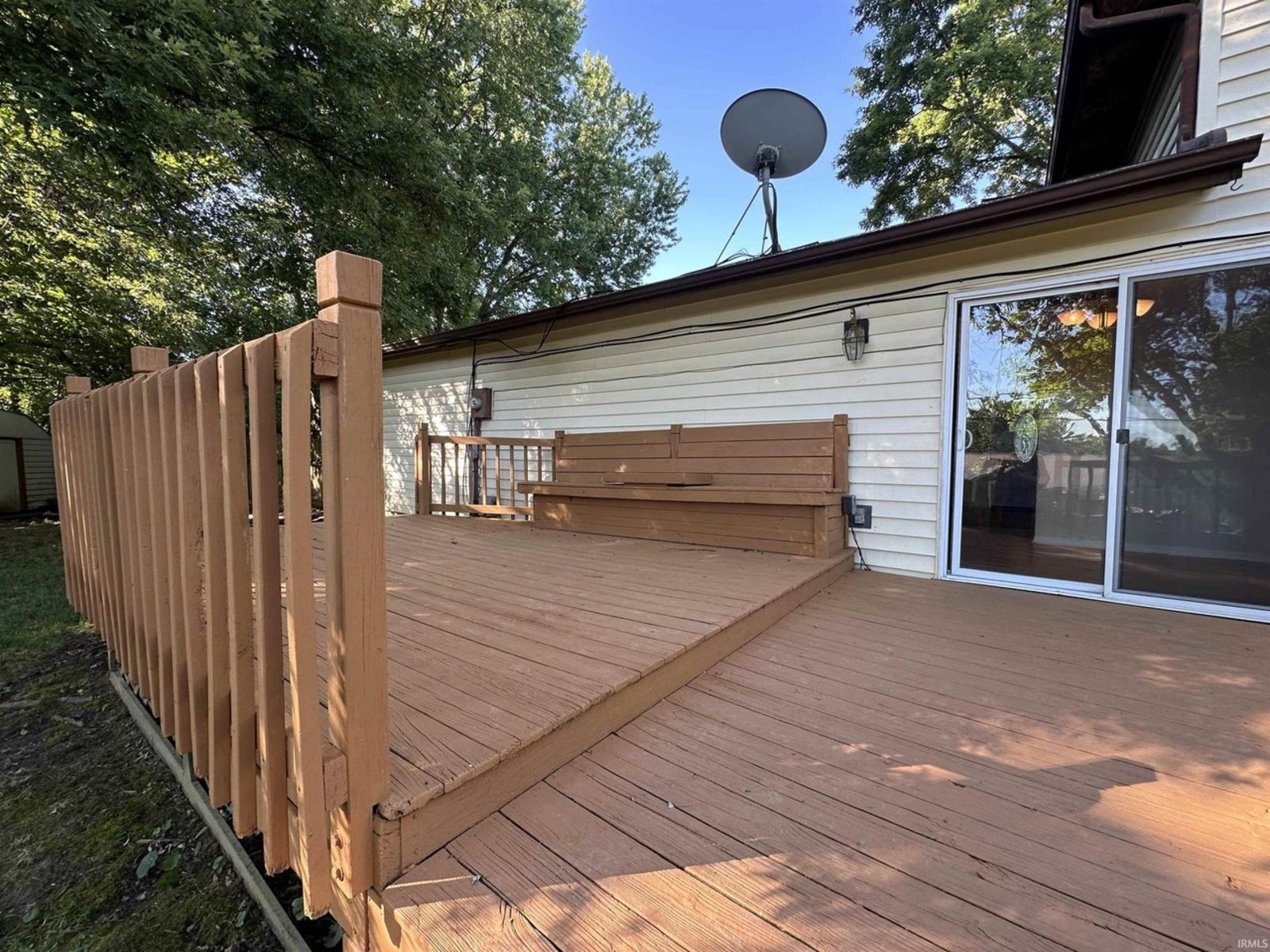 Welcome to this inviting home, where you'll find a spacious living room with beautiful wood floors that seamlessly connect to the breakfast nook and a well-appointed kitchen. Off the nook, a sliding glass door opens to a large deck, perfect for entertaining, which overlooks the fenced backyard. Upstairs, there are three comfortable bedrooms and a hall bath. The lower level offers a cozy family room with a charming stone fireplace and a full bath. Situated on a quiet cul-de-sac on the south side, this home is conveniently close to all amenities and just a short drive from I-69 and downtown Bloomington.