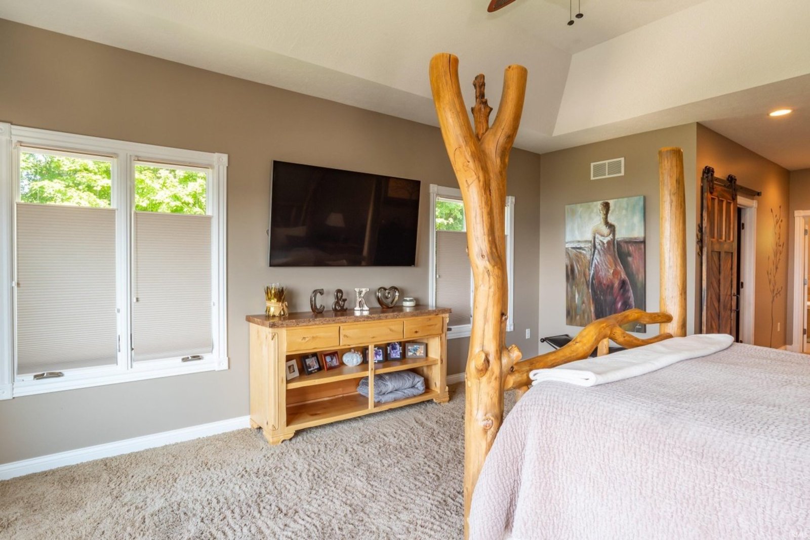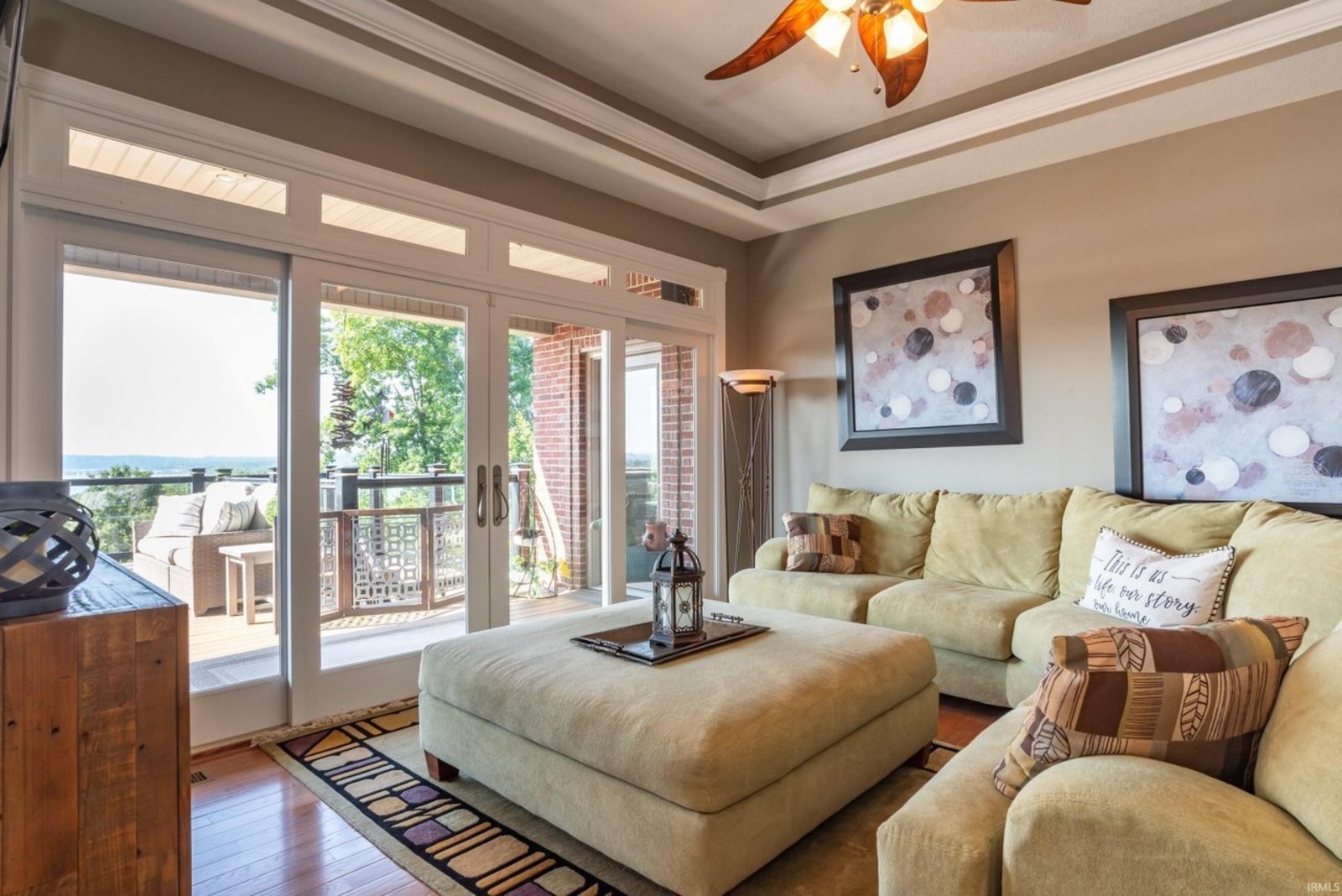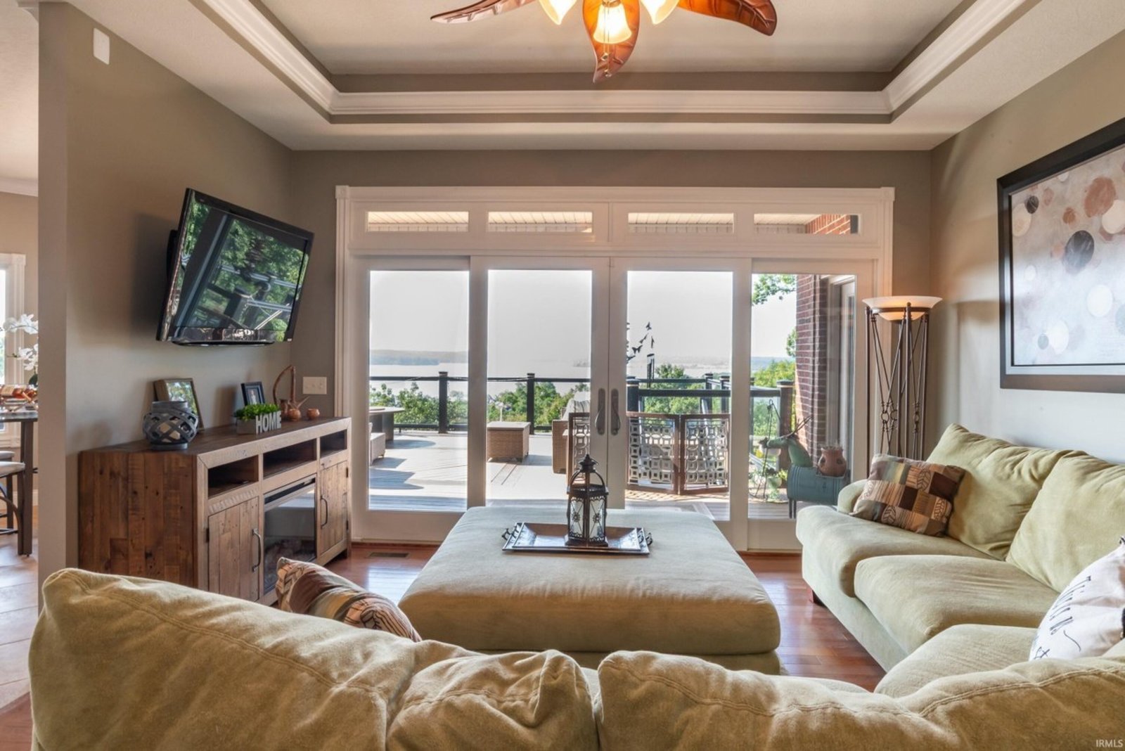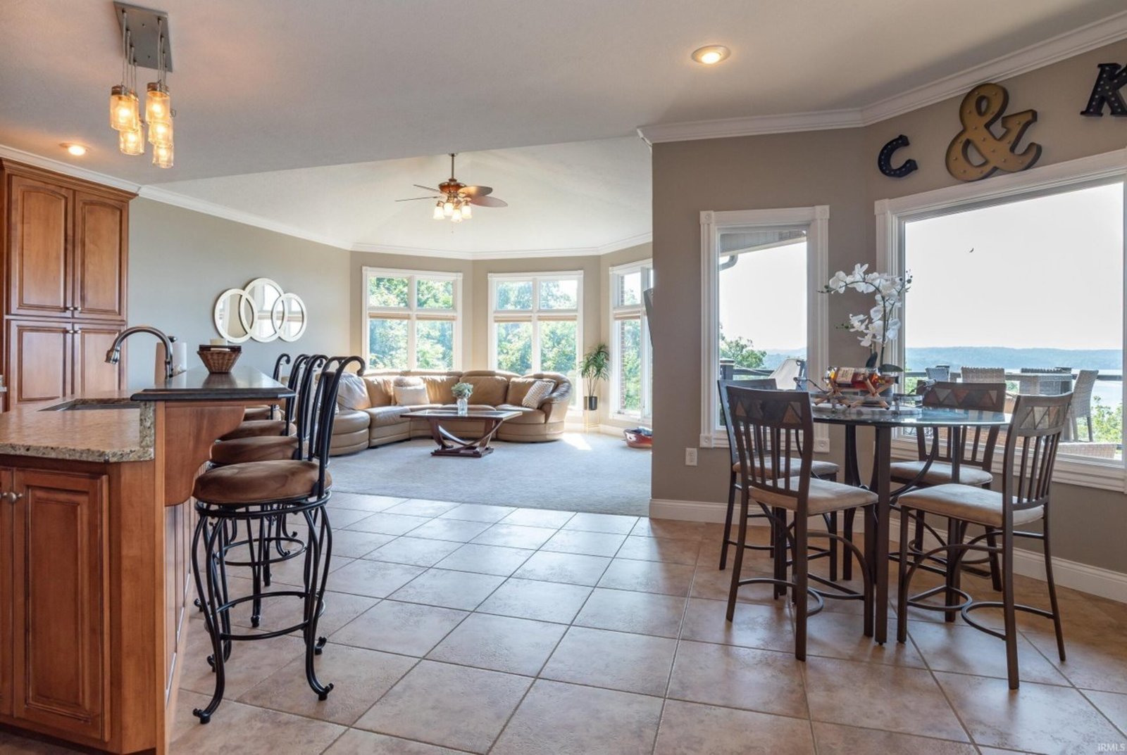 What a view! Overlooking the shimmering expanse of Lake Monroe, this extraordinary all-brick ranch with a full finished walkout basement offers a rare treasure—a private boat dock, granting you effortless access to the water. Thoughtfully designed inside and out, the home blends timeless craftsmanship with modern comfort. The oversized two-car garage (687 sq. ft. ) and additional drive-in basement garage (705 sq. ft. with workshop) provide ample space for lake gear, hobbies, and storage. Inside, rich hardwood floors, crown molding, tray ceilings, and walls of windows frame breathtaking lake views at every turn. The gourmet kitchen features stainless steel appliances, granite countertops, and a view that makes even your morning coffee feel special. The main level offers both formal and casual spaces—a dining room, living room, breakfast nook, and family area—along with a spacious primary suite complete with jetted tub, separate shower, and dual vanities. Two additional bedrooms and a full bath complete the level. The walkout basement is perfect for guests or entertaining, with a family room, full kitchen/bar, bedroom, full bath, and direct garage access. Above the main garage, a generous bonus room could serve as a 5th bedroom, game room, or home office. This is more than a home—it’s a front-row seat to Lake Monroe’s beauty, where each day begins with sparkling water views and ends with unforgettable sunsets. Please look at virtual tour for more pictures of this magnificent pictures.